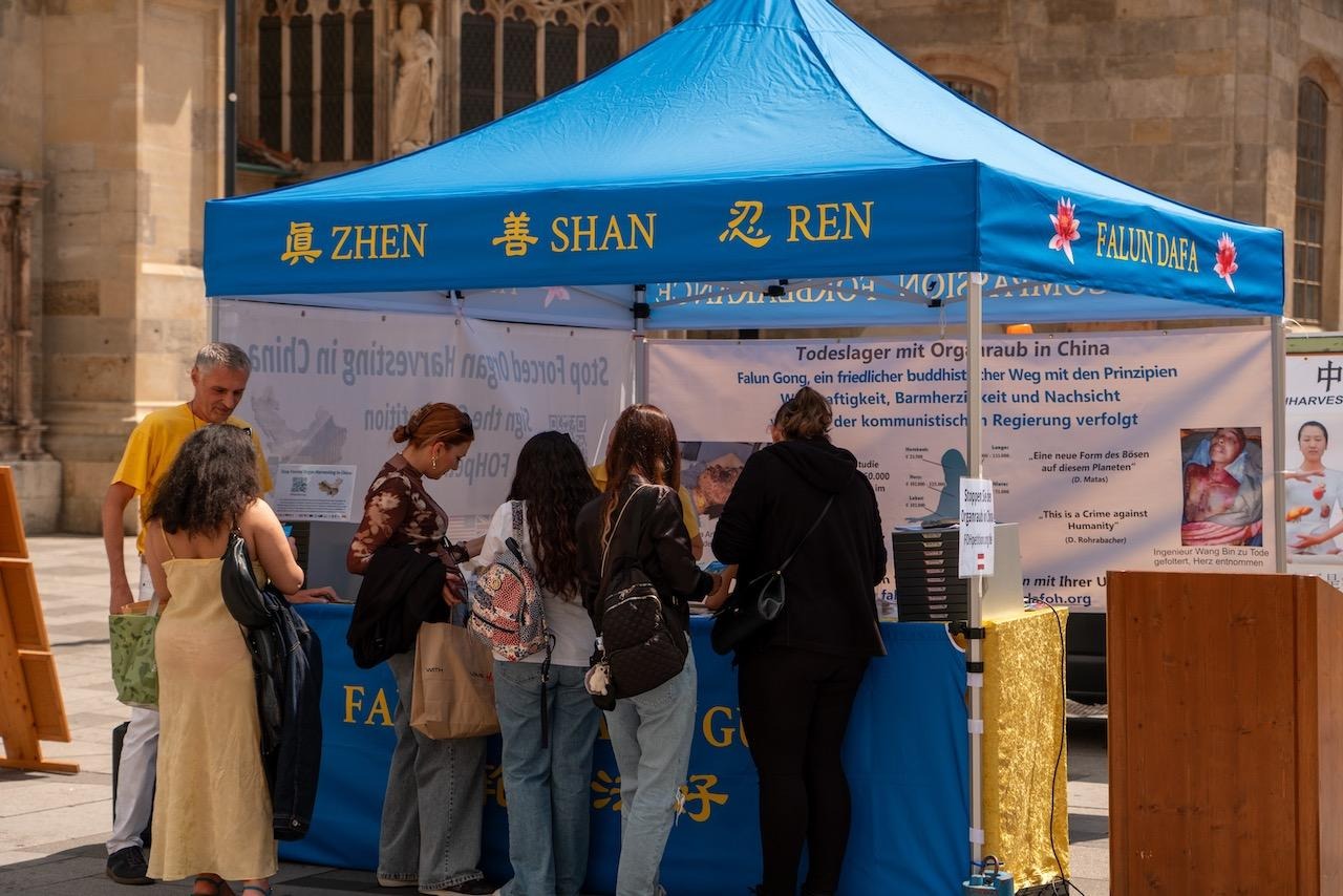 法輪功學員在活動現場演講中,向過往民眾講述在過去二十六年來,法輪功在中國遭受的殘酷迫害,直到今天,中國仍有人因為堅持真、善、忍的普世價值而遭受中共迫害,甚至被折磨致死。據獨立調查結果,估計有數十萬法輪功修煉者已在中國監獄因活摘器官而被虐殺。