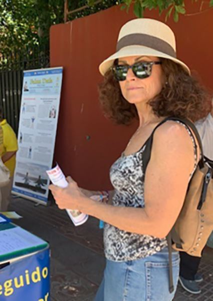 心理醫師貝倫•羅德裏格斯(Belen Rodríguez)女士是居住在大使館附近的居民,她告訴法輪功學員,這已經不是她第一次看到反迫害和平抗議了。「我在這裏多次看到你們,難以理解中共對信仰真善忍的好人迫害這麼多年。」羅德裏格斯還說:「活摘器官這不是一般的罪惡,這不是正常人能做得出來的,必須要起訴這些惡人!」她的語氣中充滿了憤怒。