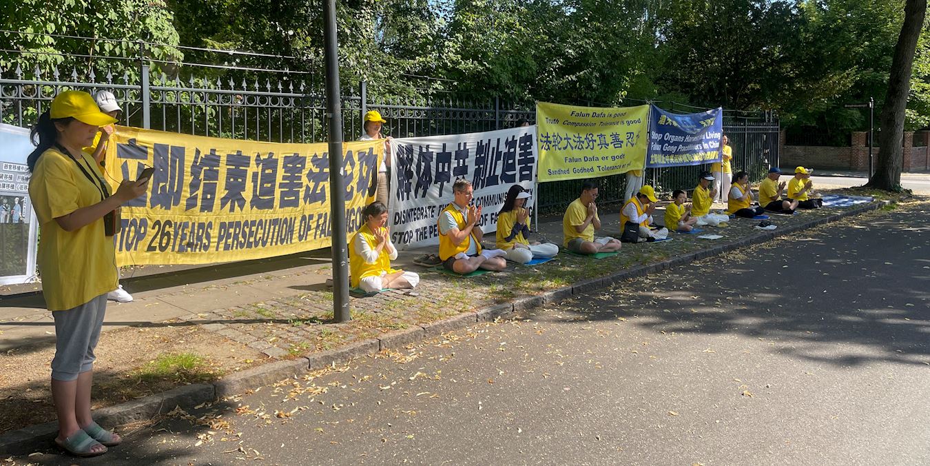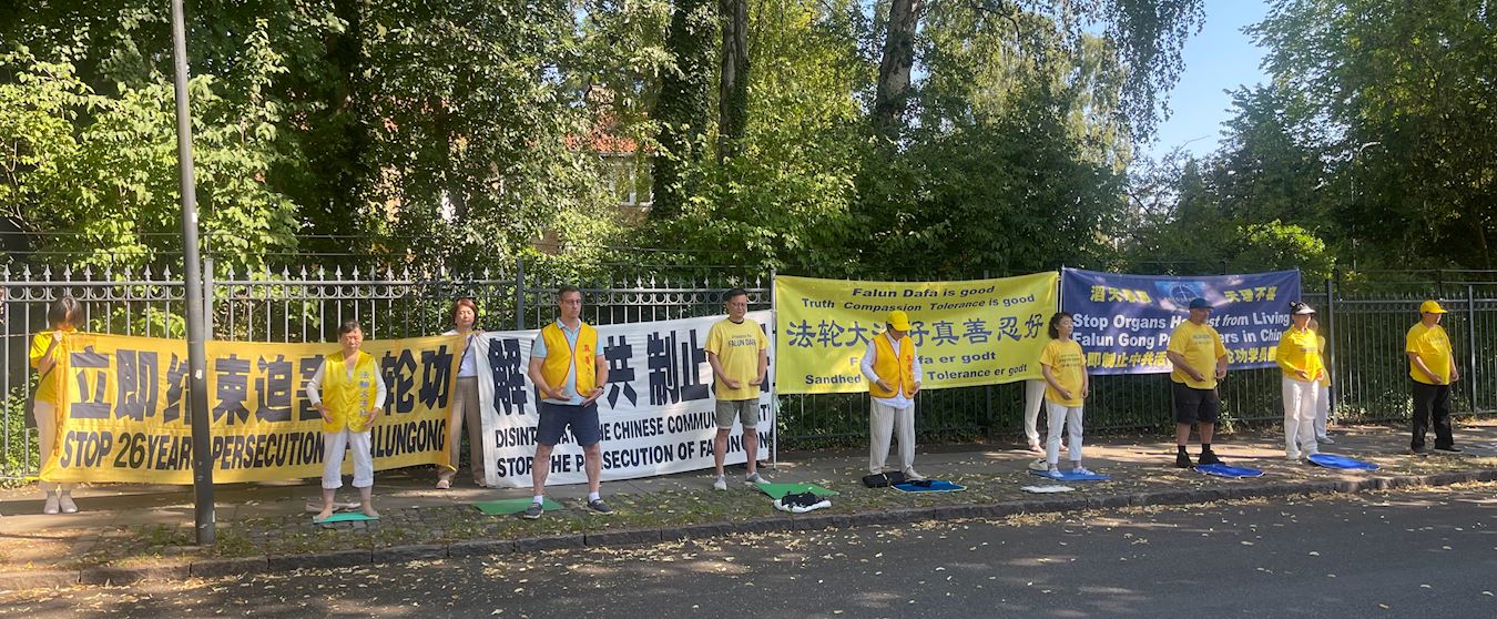 自二零零三年起,丹麥法輪功學員開始每天在中使館前,抗議中共迫害法輪功。至今持續了二十多年。每到「七﹒二零」這個黑暗的日子,更多的學員來到這裏,表達自己的訴求:立即停止對信仰真善忍群體的迫害。