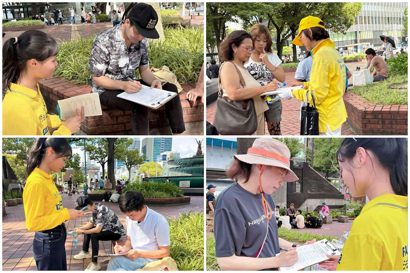 下午,在噴水附近,一對來自瑞典的遊客也對法輪功學員們的反迫害活動表示支持。這對遊客看起來五十多歲。那位先生對法輪功學員說,他與太太到日本旅行一個月,曾在七月十二日(上週六)在京都見過法輪功學員的反迫害遊行。當得知當天參與名古屋活動的法輪功學員也曾在京都參加過那次遊行時,他說真的沒想到。