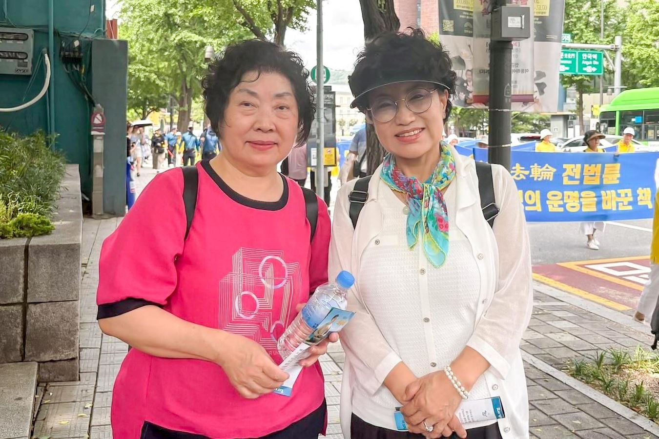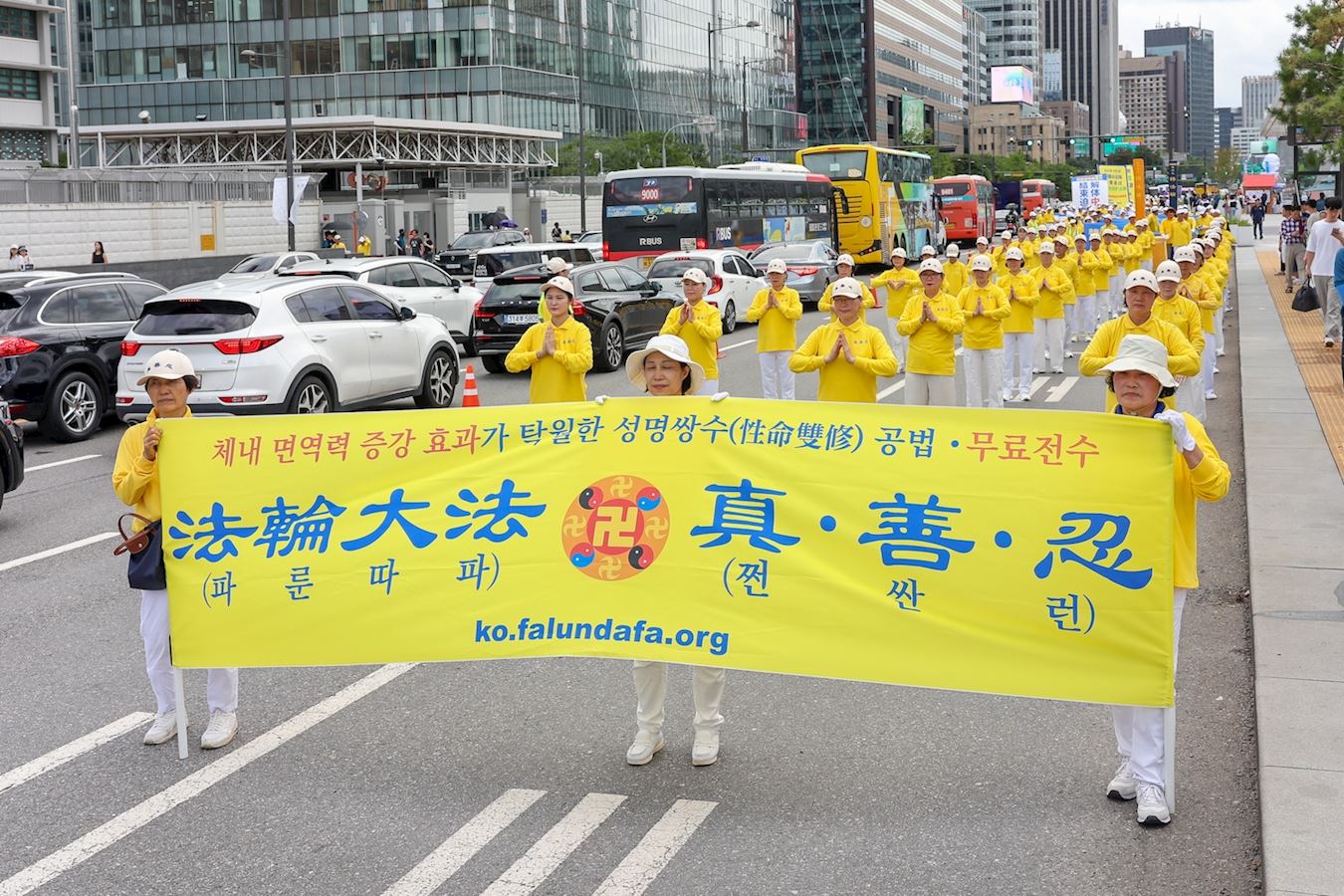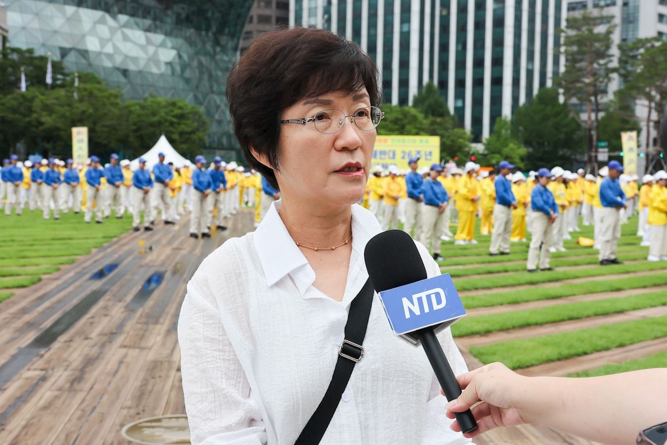 在曹溪寺前等公交車的黃京姬(황경희)說:「我曾幾次往返中國,對中國限制宗教信仰自由方面有切身體會。我親眼看到中共打壓教會,法輪功學員們聚在一起煉功也被打壓,中共可能是擔心形成勢力,但這種想法完全說不通。法輪功連宗教都不是,我覺得法輪功是為了修身養性而進行的打坐。」她鼓勵法輪功學員們說:「希望你們堅持住。加油!」