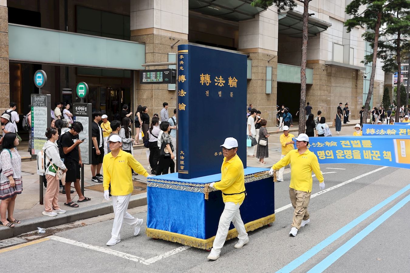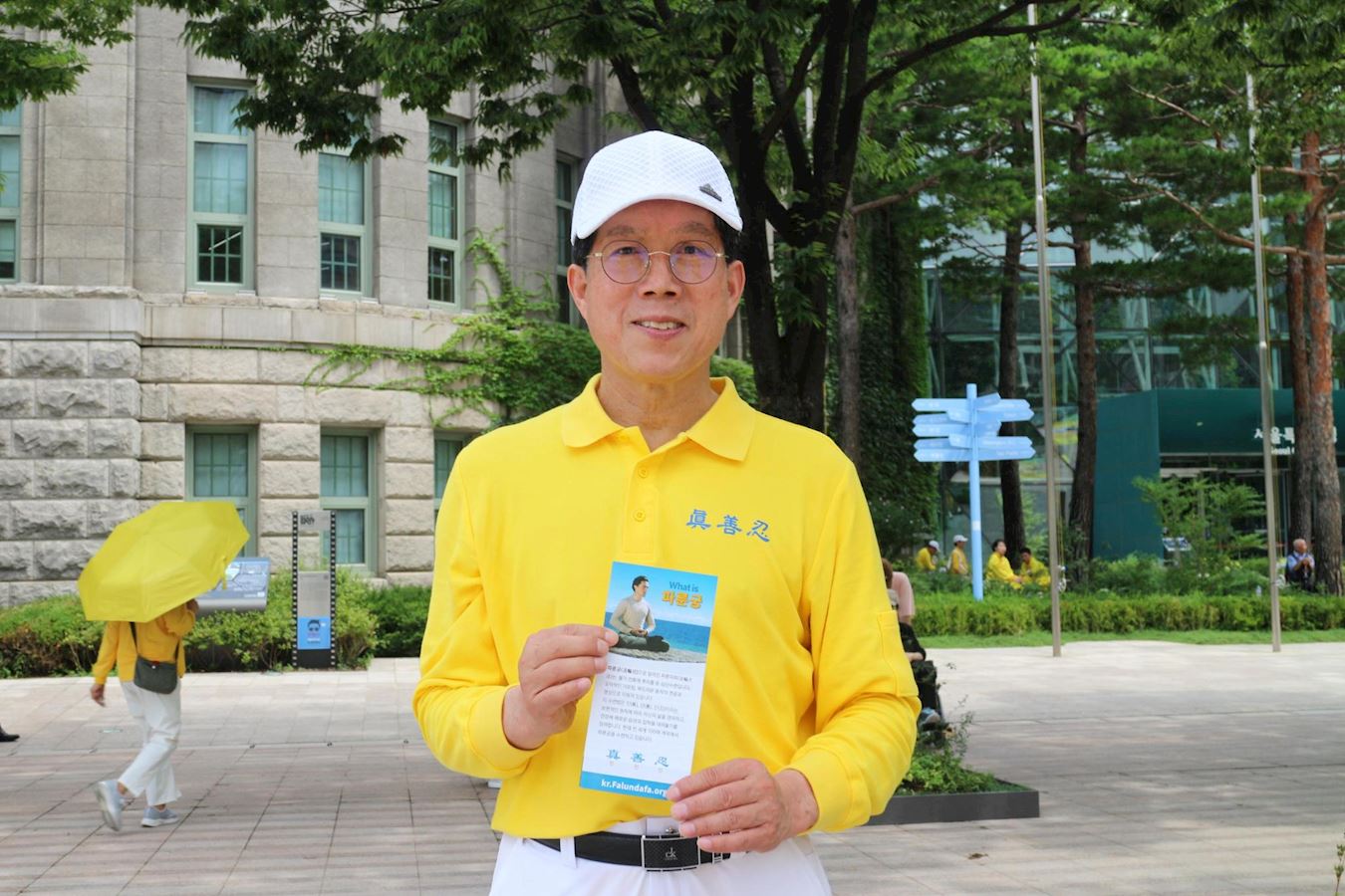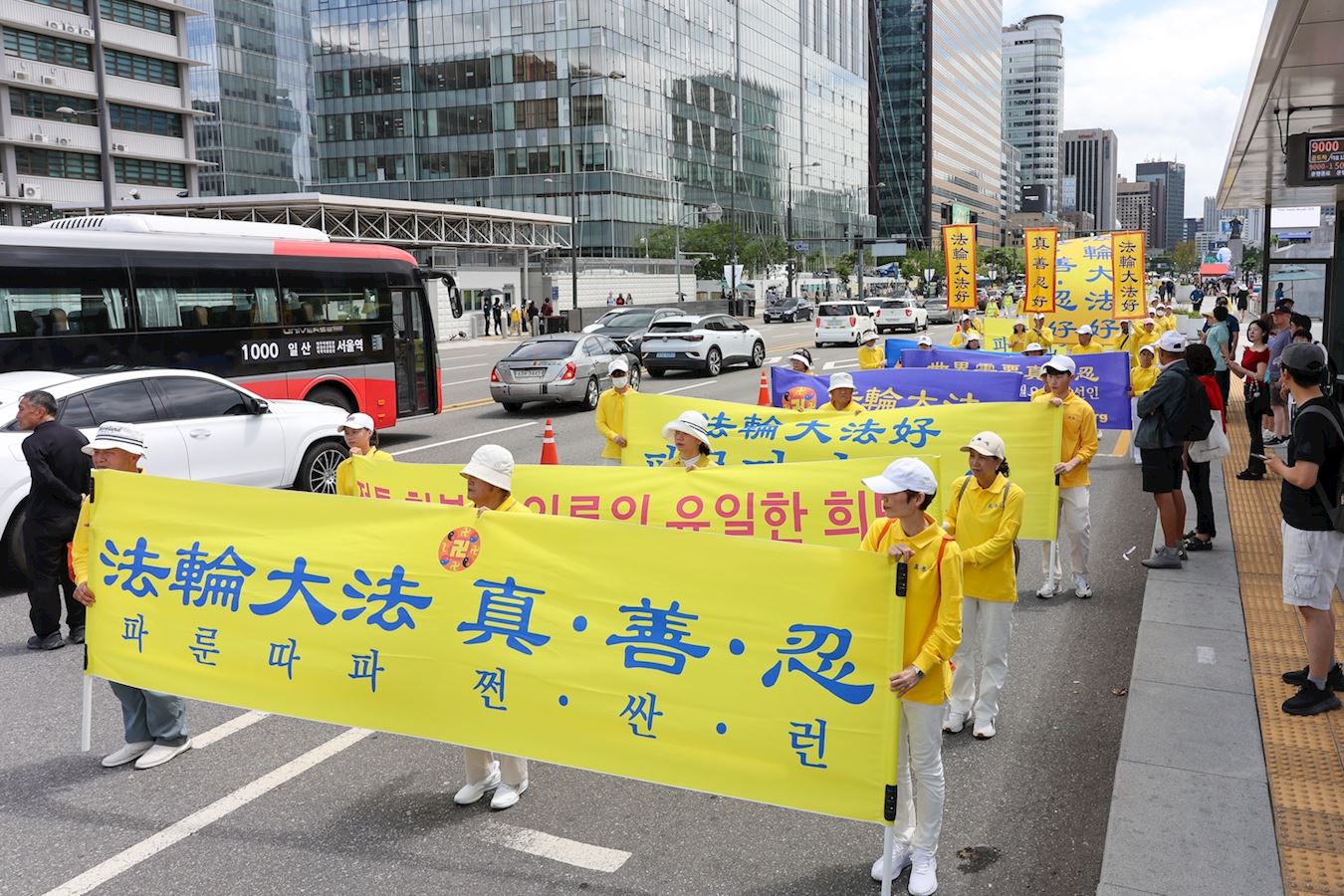在曹溪寺前等公交車的黃京姬(황경희)說:「我曾幾次往返中國,對中國限制宗教信仰自由方面有切身體會。我親眼看到中共打壓教會,法輪功學員們聚在一起煉功也被打壓,中共可能是擔心形成勢力,但這種想法完全說不通。法輪功連宗教都不是,我覺得法輪功是為了修身養性而進行的打坐。」她鼓勵法輪功學員們說:「希望你們堅持住。加油!」