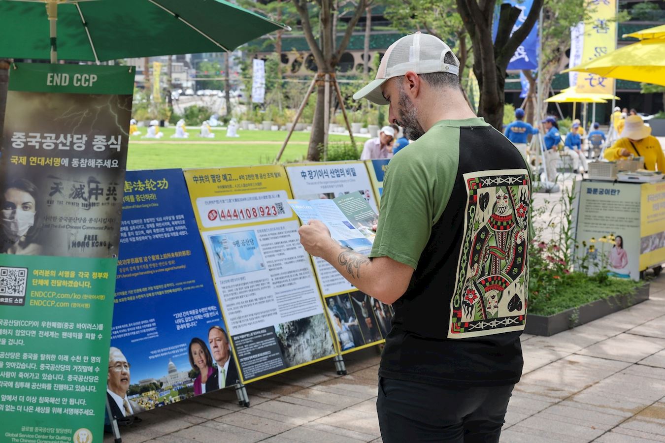 來自仁川的金錫源(김석원)先生注視向光化門方向移動的遊行隊伍時,注意到學員們手持的橫幅內容,主動向記者詢問法輪功的情況。在得知真相後他說:「中共迫害法輪功,可能是因為修煉者人數太多了。更讓我震驚的是,他們竟然把修煉者的器官當成賺錢的工具。」他繼續說道:「如果沒有器官移植的需求,供應自然也會減少。器官移植應該用自願捐獻的腦死亡之人的器官才對,但他們卻強行活摘,為了讓一個人繼續活著,而讓那些原本不想死的另外一個人因此喪命,這實在是太悲慘了。」金先生還表示:「聽說法輪功修煉『真、善、忍』,而中共本來就是邪惡的組織,所以無論哪個團體強大起來,它都要打壓,不分好壞。這種迫害必須立刻停止。」