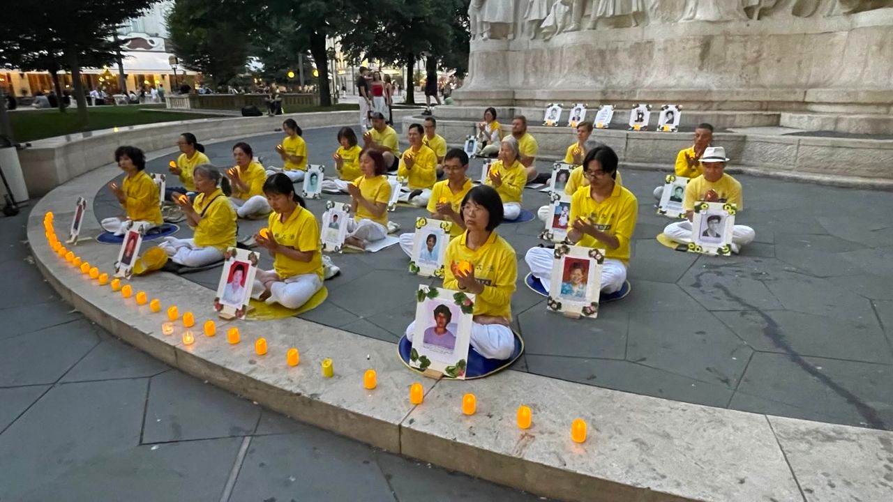 ![]() 圖1:二零二五年七月十九日,法輪功學員在匈牙利首都布達佩斯的沃洛什馬蒂廣場舉行和平集會。圖為燭光悼念。 |