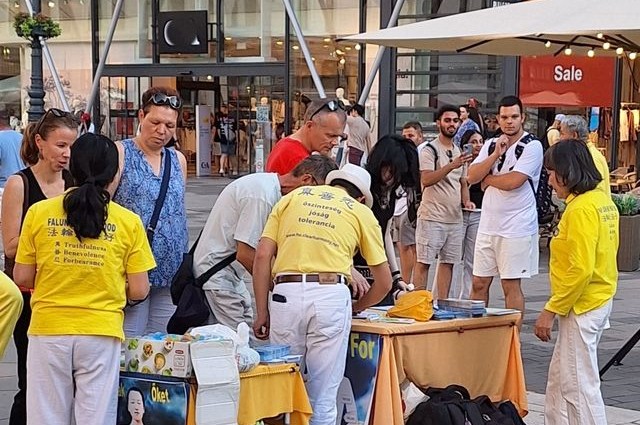 學員還向他們介紹了很多關於甚麼是法輪功的信息,佐爾坦說:「學員們身上有一種非常善良的氣場,令人感到愉悅。我希望他們繼續努力,做好這件事。」