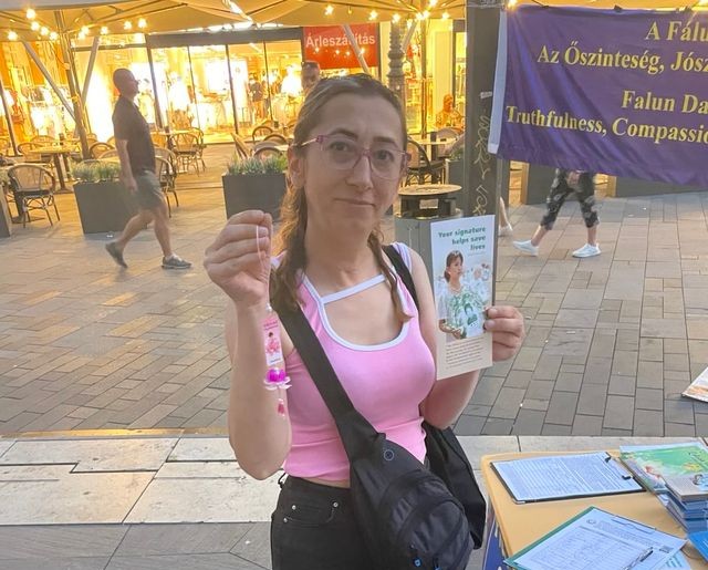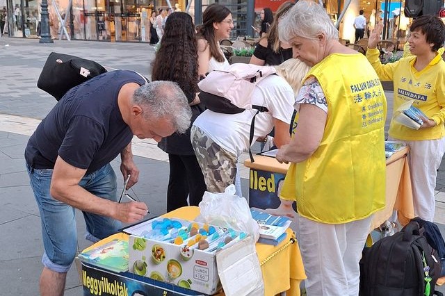 佐爾坦(Zoltán)和朋友來自埃爾德(Érd),看到關於活摘器官的橫幅後,佐爾坦主動詢問這是怎麼回事,了解到事實真相後,佐爾坦感到非常震驚,隨即在譴責迫害的請願書上簽下自己的名字。