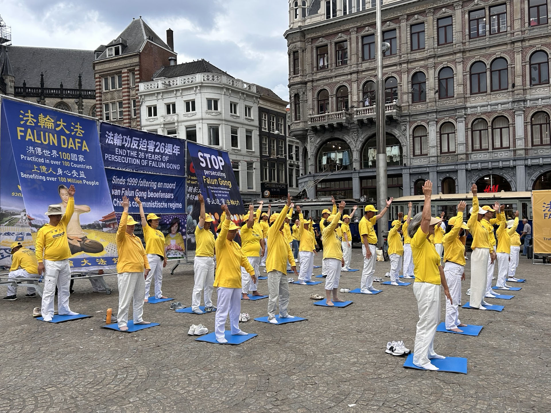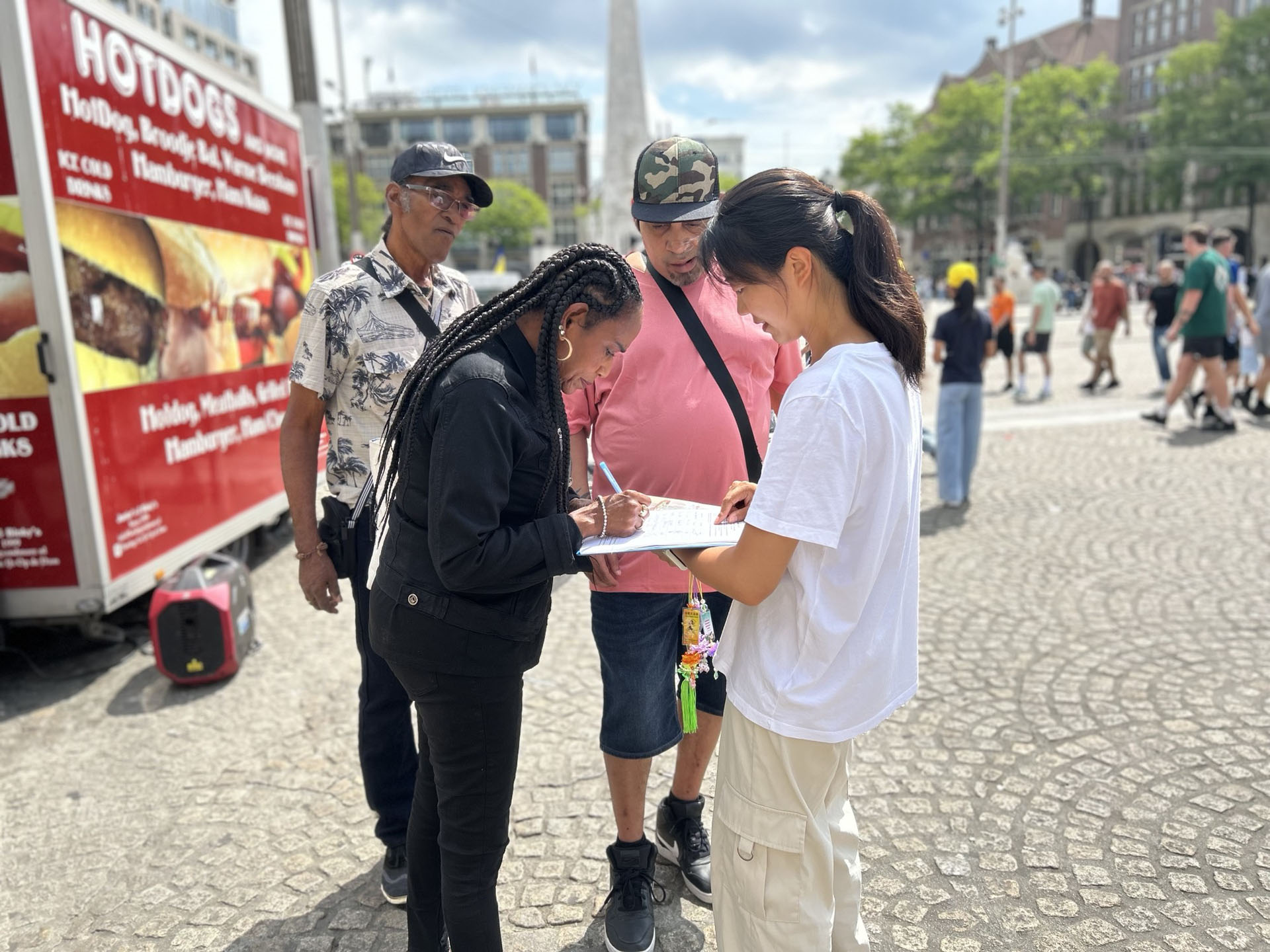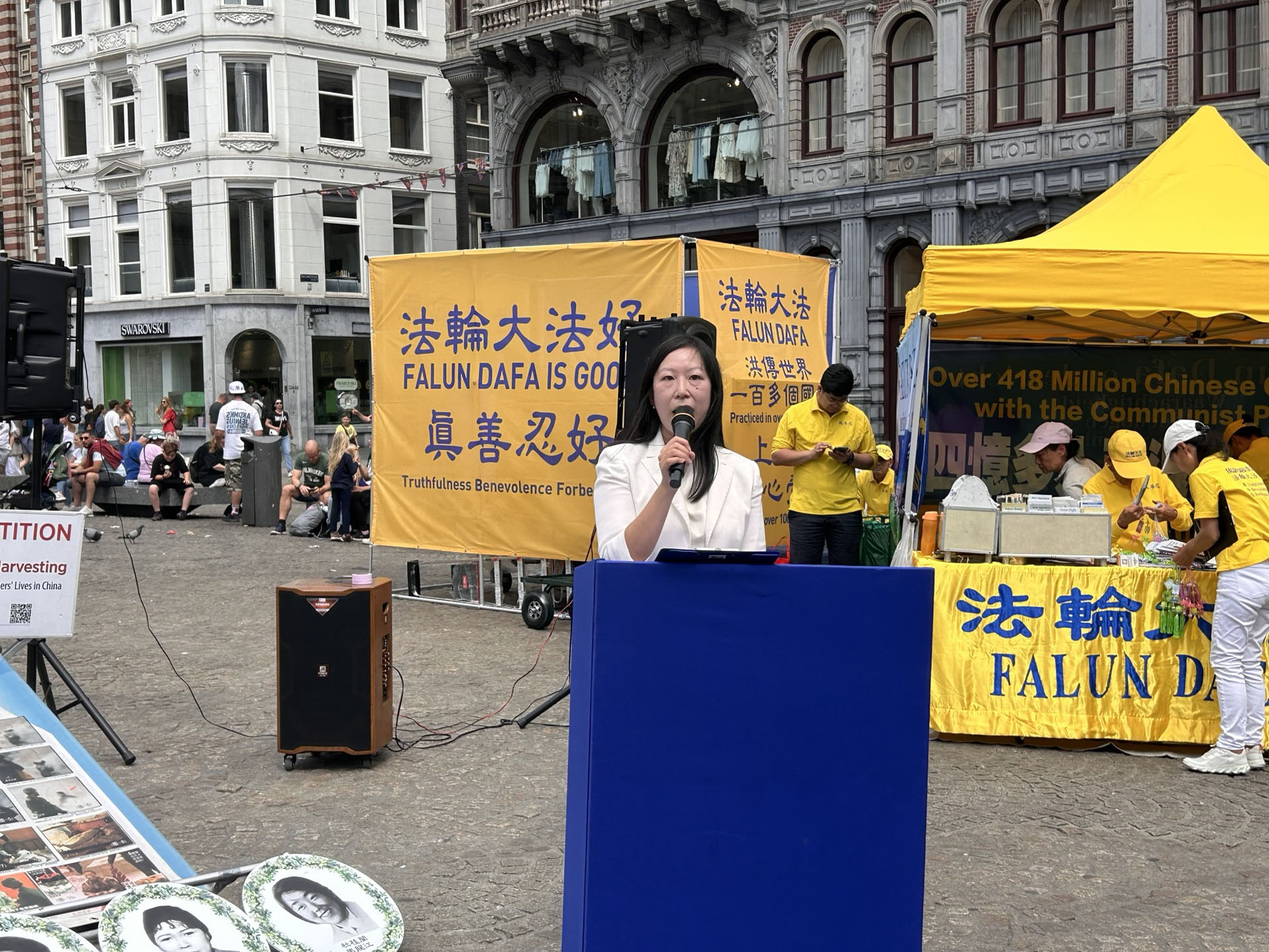 荷蘭法輪功佛學會會長王家恩女士在集會上發言,她說:「一九九九年七月二十日,中國共產黨在全國範圍內發動了對法輪功的鎮壓,因為法輪功發展迅速,廣受歡迎,也因為共產黨無神論的意識形態與法輪功倡導的傳統價值相悖。」