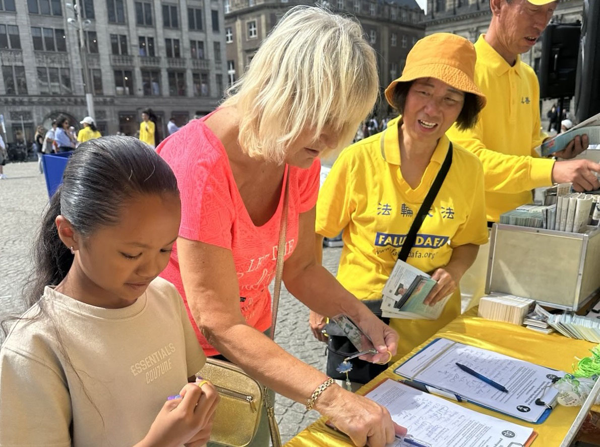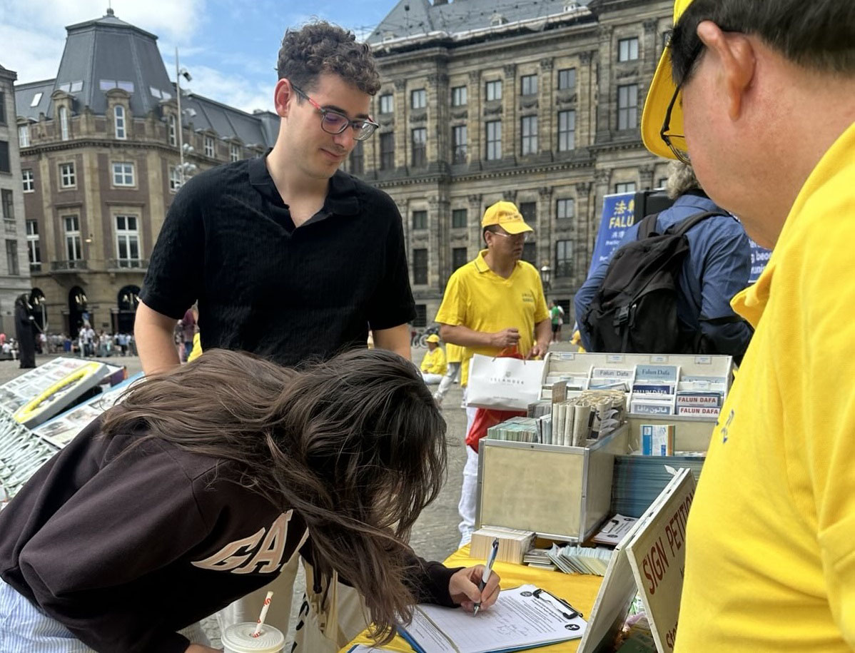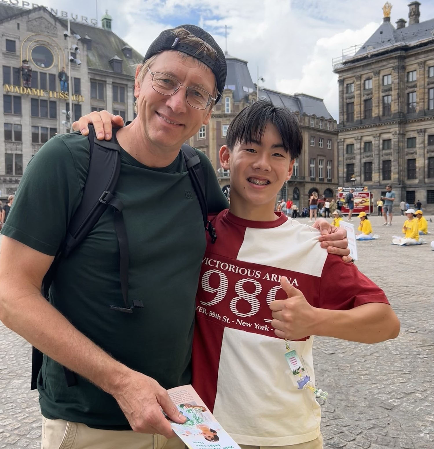 一對瑞典父子也來簽名支持法輪功反迫害,父親說:「我覺得支持中國法輪功學員很有意義,因為我的兒子就是來自中國的,我很高興,他能幫助他出生的那片土地上的人。」兒子是兩歲時被父親收養的,聽到法輪功學員介紹的真相後,他說:「真善忍很好,如果每個人都遵循這三個原理,世界就會更加和平,人們也會更加友善。」「我對中共不太了解,但當我聽到這個消息(中共迫害法輪功)時,我不明白他們為甚麼要這麼做。我覺得這真是一個殘酷的體制。這確實很糟糕。我不太喜歡它,也不支持它。」