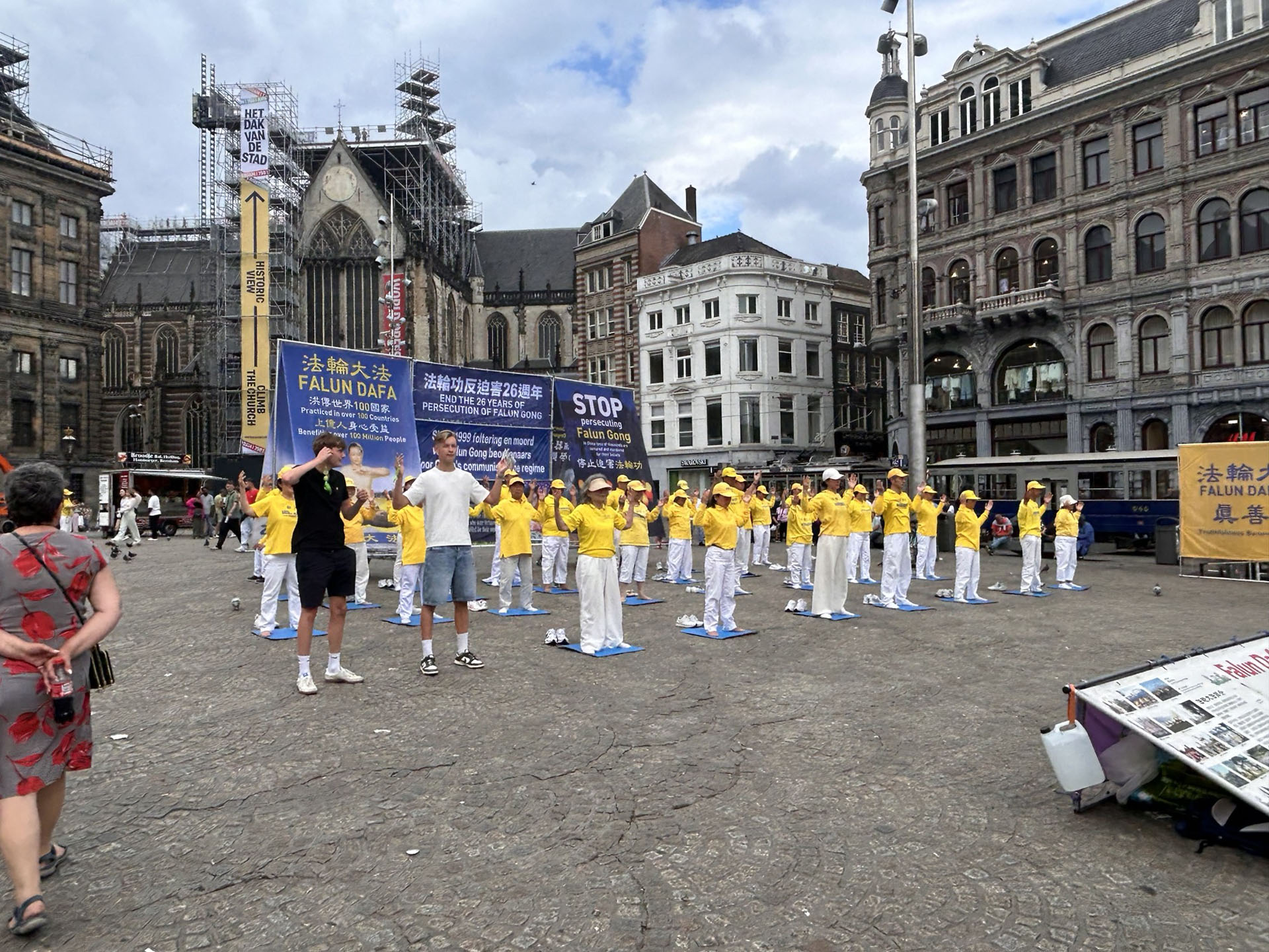 ![]() 圖1~4:法輪功學員在阿姆斯特丹的水壩廣場舉行集體煉功,講真相,悼念在中共殘酷迫害中失去生命的法輪功學員。 |