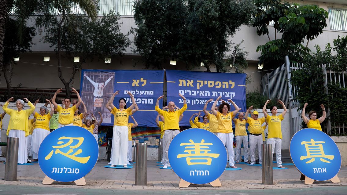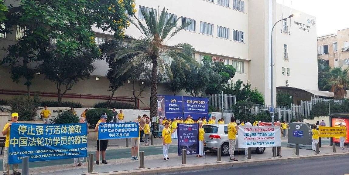 抗議活動中,以色列學員代表發言說:「活摘法輪功學員器官是史無前例的罪行,是最恐怖的謀殺,是對整個人類的犯罪。」「這是一個如此令人難以置信的罪行,以至於很多人仍然無法相信它的真實存在,但不幸的是,大量證據顯示,這種罪惡即便在今天仍在持續。」