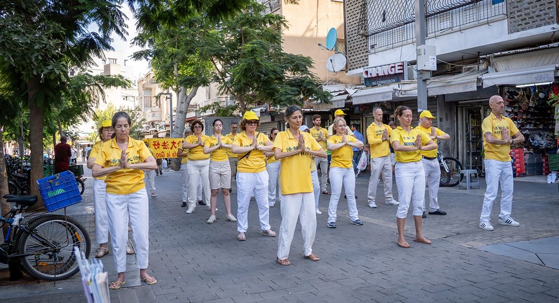 ![]() 圖6:二零二五年七月十九日,以色列特拉維夫唐人街的煉功現場。 |