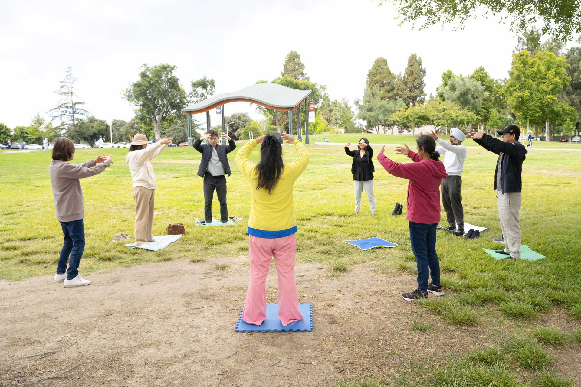在公園散步的佛利蒙居民瓊女士(Joan)表示,學功後,她感覺很好,「我之所以要學功,是因為我希望身體健康。我想每天都煉。」