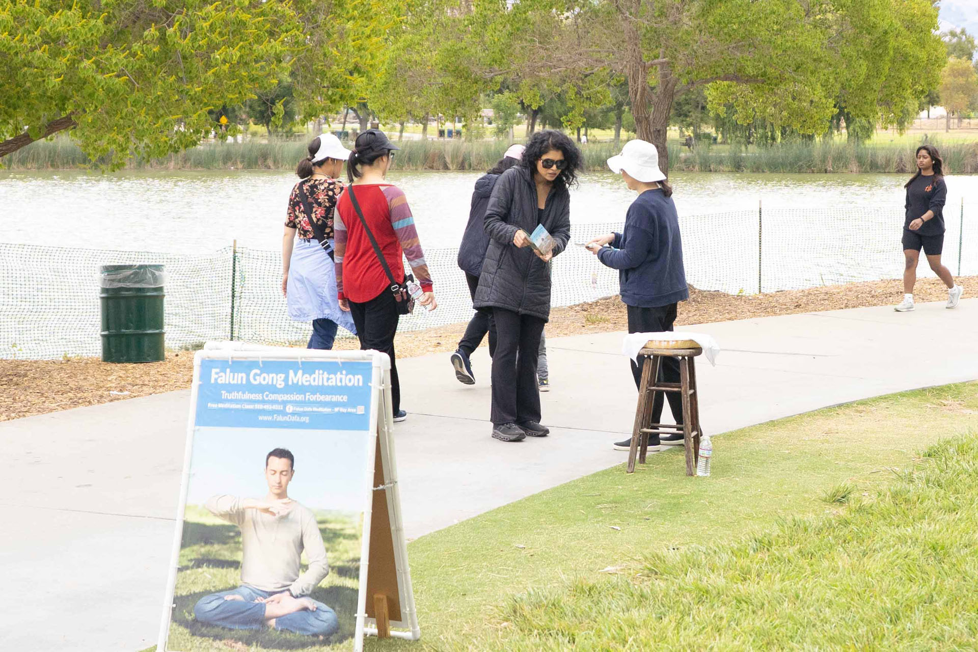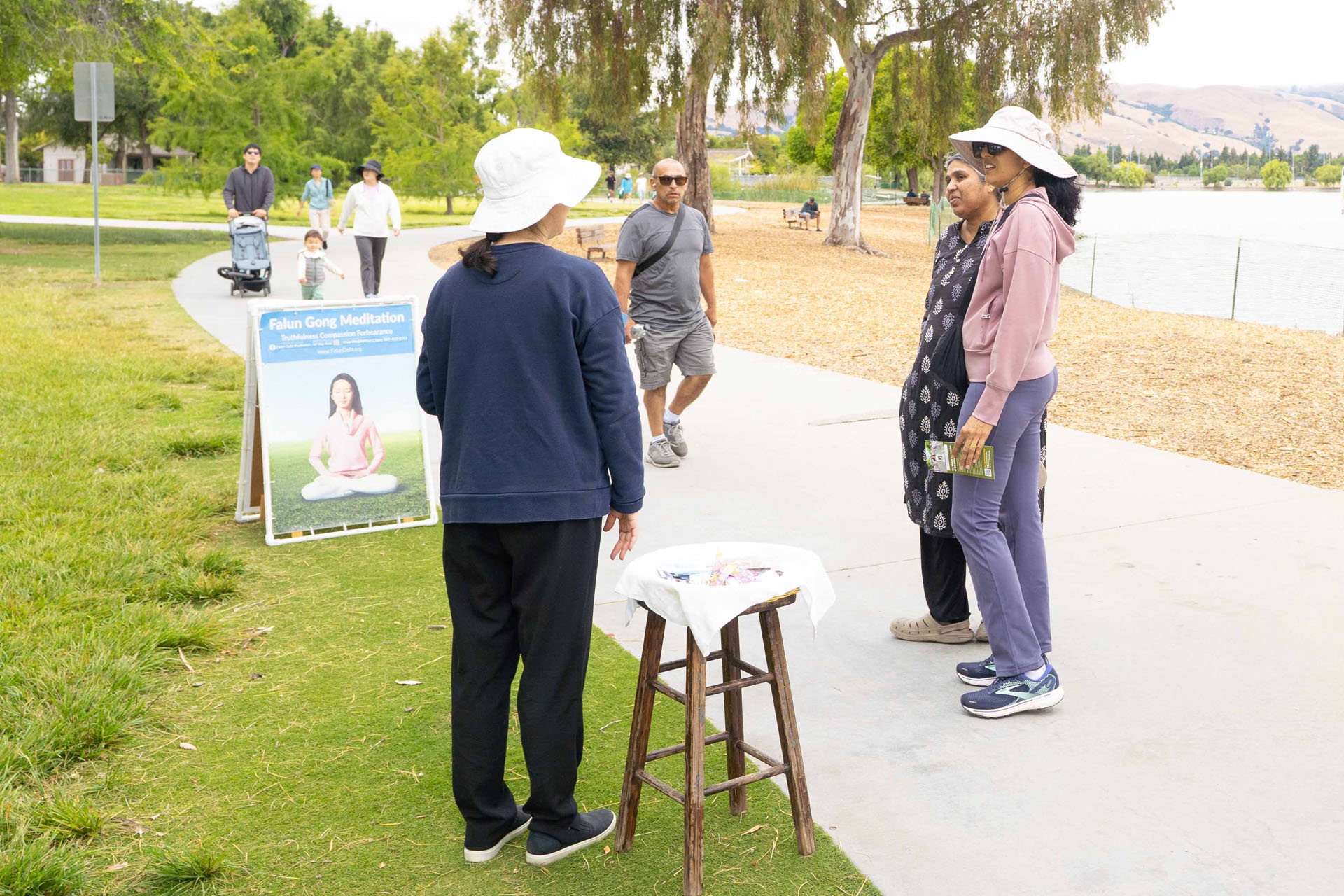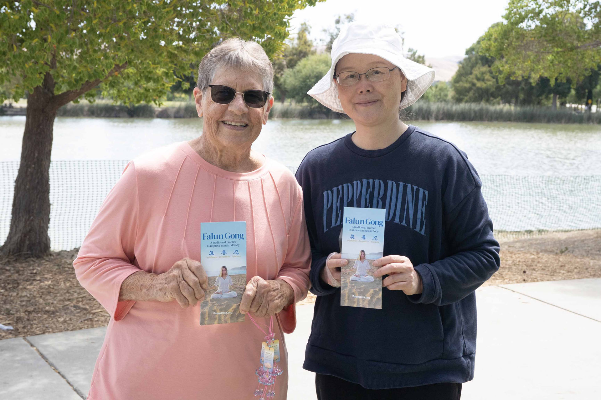 她感謝學員來公園教功,「如果你們不來,我就沒有機會了解法輪功,謝謝你們。」