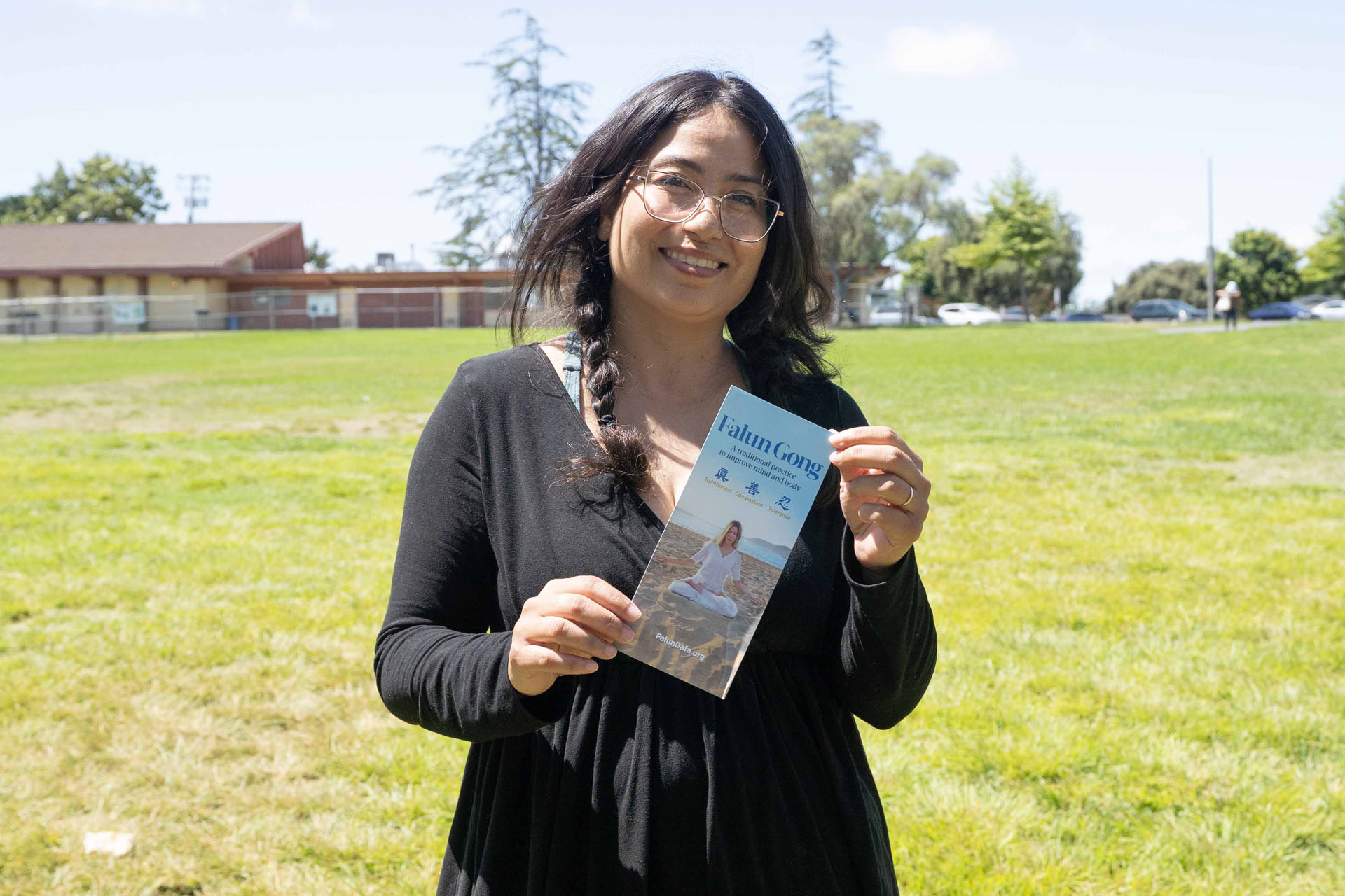談到她為甚麼要學法輪功,她表示,「我要成為一個更好的人。一個月前我就想做今天要做的事,當我看到法輪功教功班信息時,我當時就想:哇,這就是我要的,我要與大家一起打坐煉功。很久以前,我就想這麼做了,今天我終於找到了。」