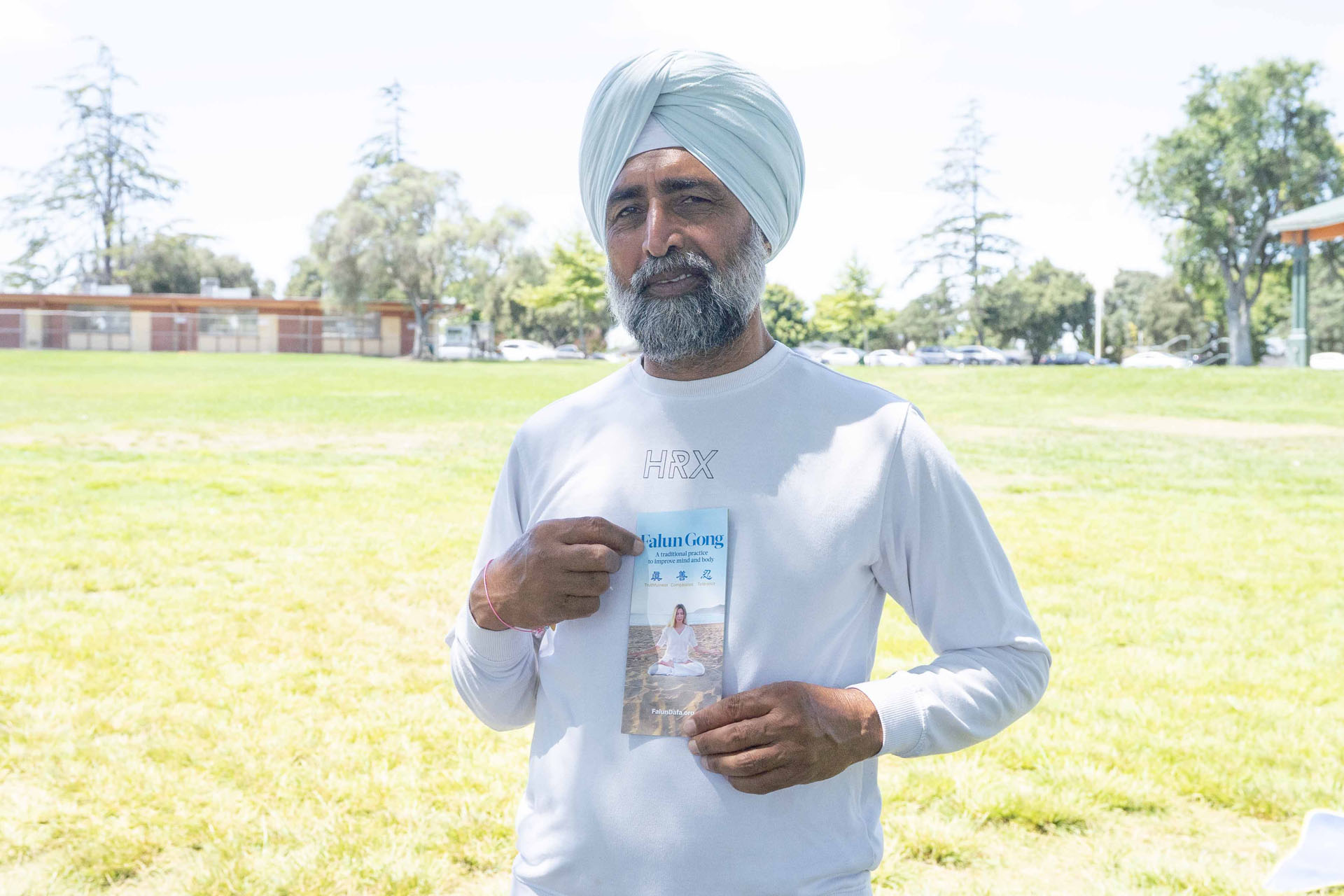印度裔居民辛格(Singh)表示,他很高興有機會煉法輪功,「非常好,有很好的能量,我感覺到光,我非常喜歡。」