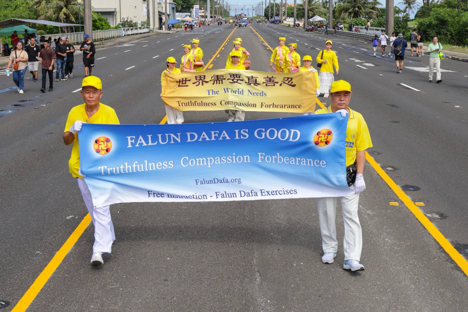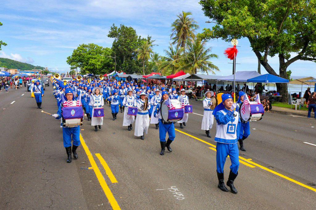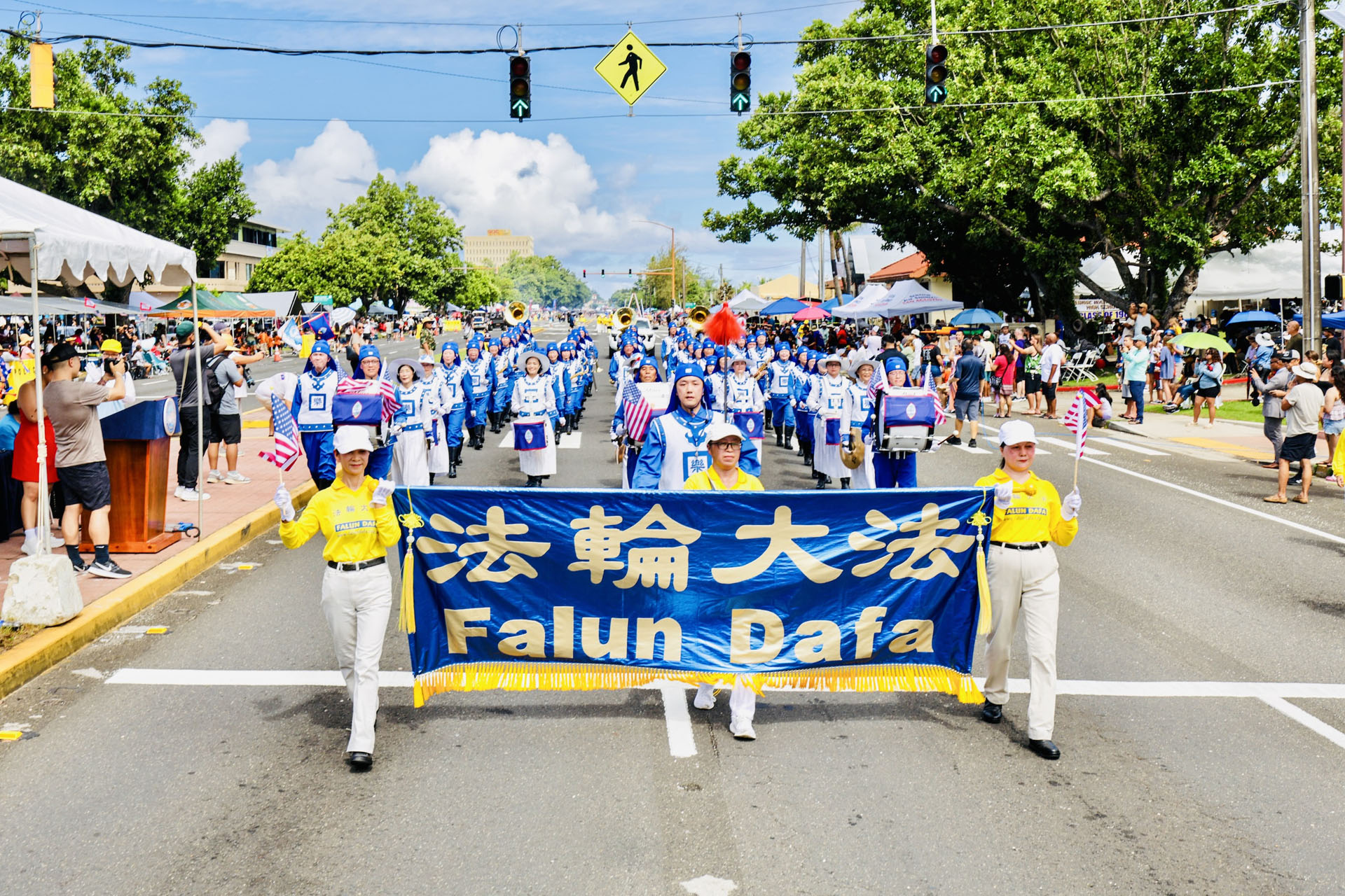今年天國樂團是第三度參加關島解放日慶典活動,陣容更勝以往,來自台灣和日本的法輪功學員們組成的天國樂團和腰鼓隊伍參加了本次遊行,備受矚目。