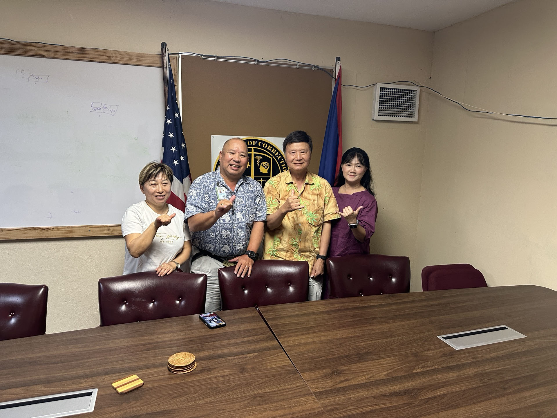 圖7:來自台灣與關島當地法輪功學員拜會關島矯正署署長(左二)