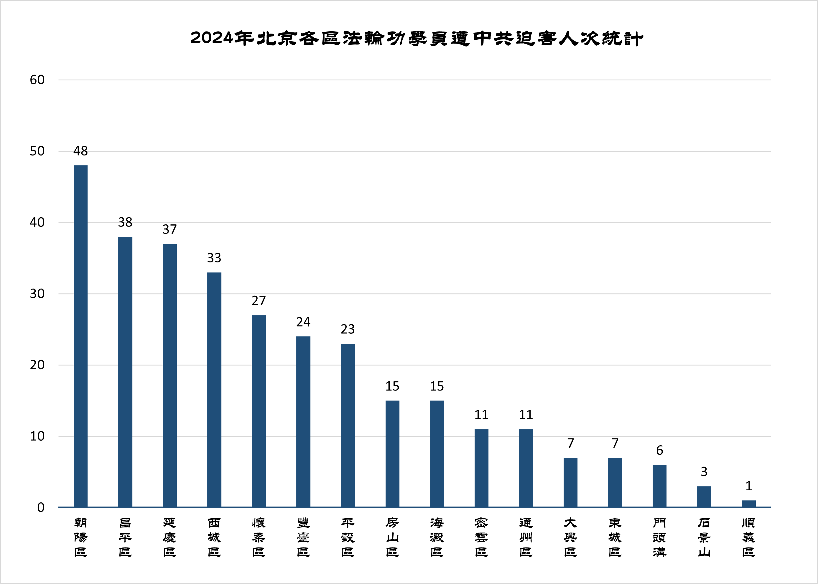 ![]() 圖2:2024年北京各區法輪功學員遭中共迫害人次統計 |
