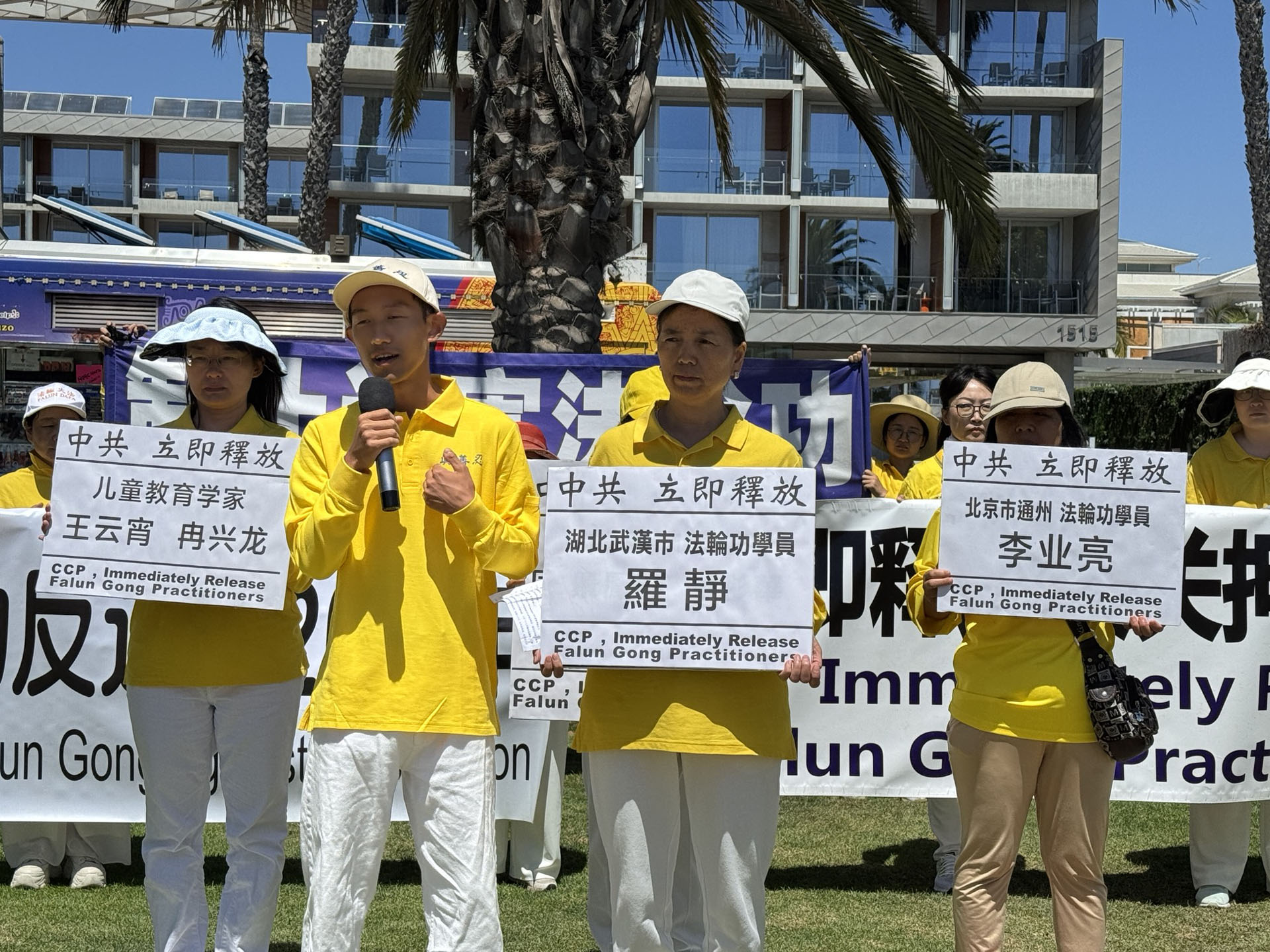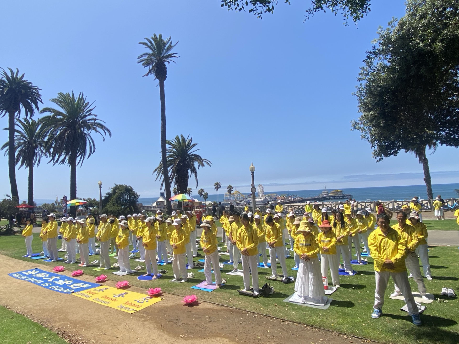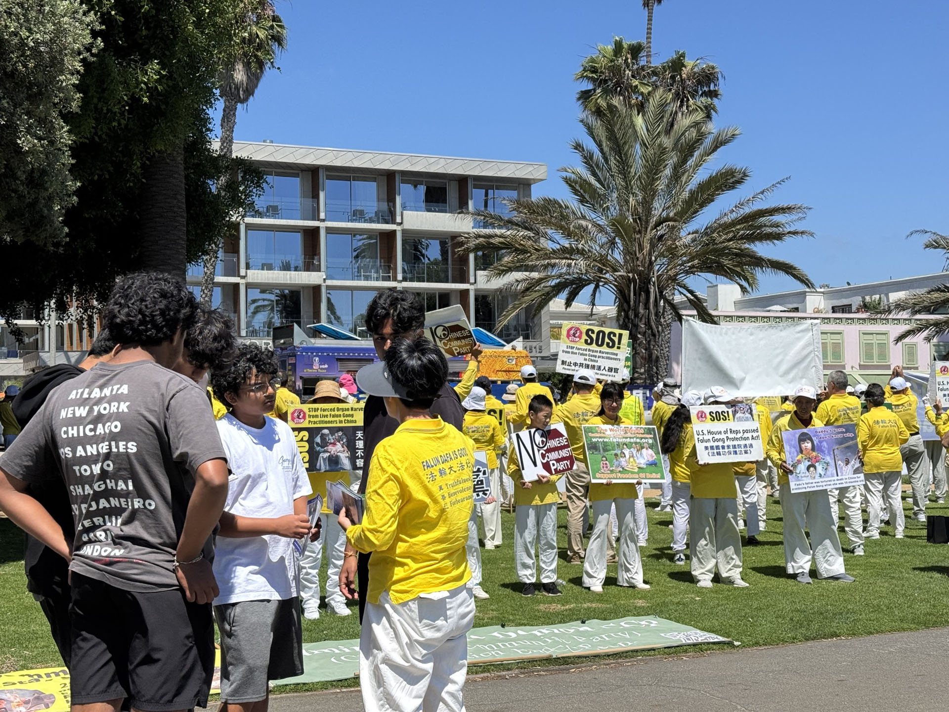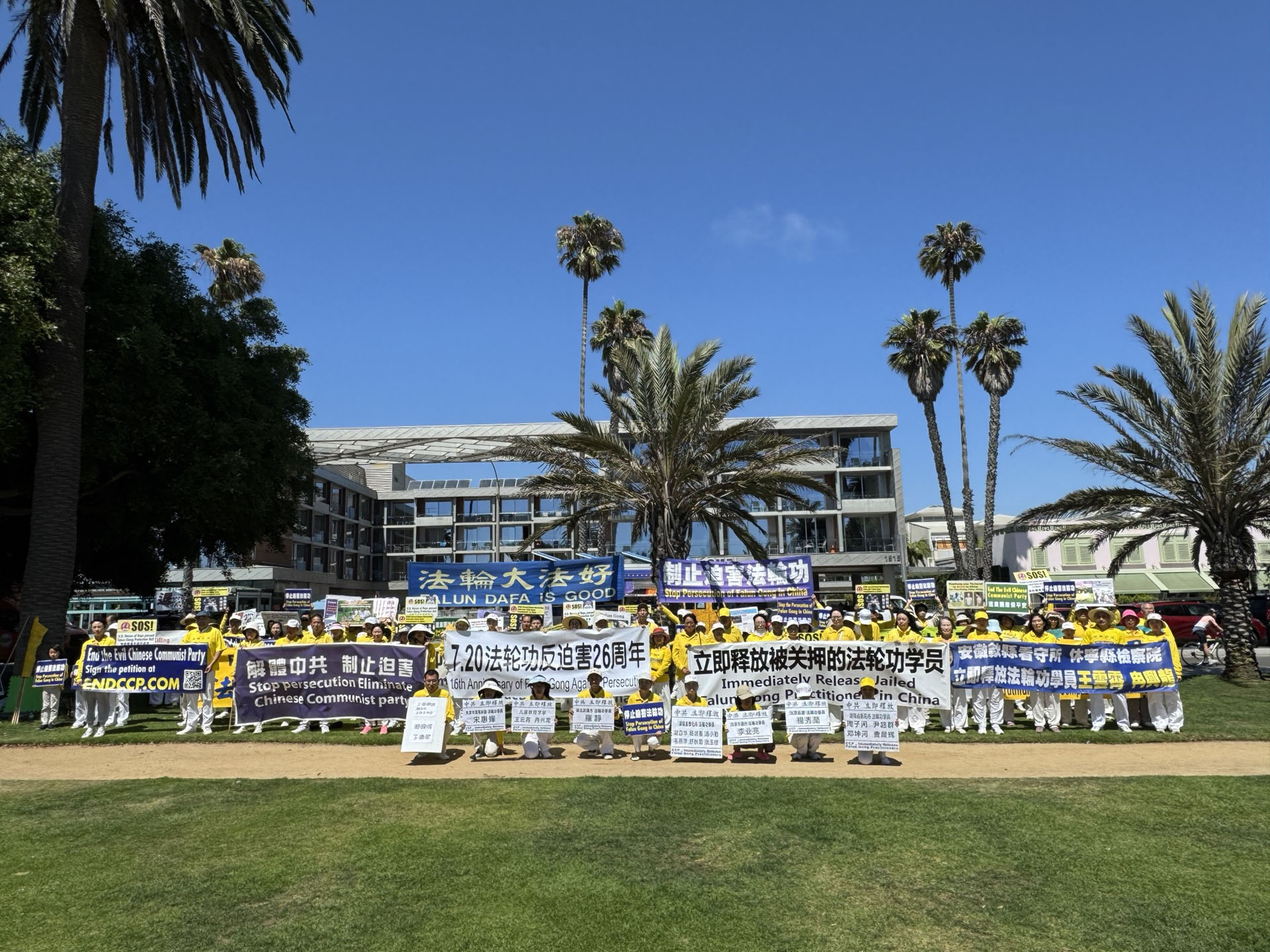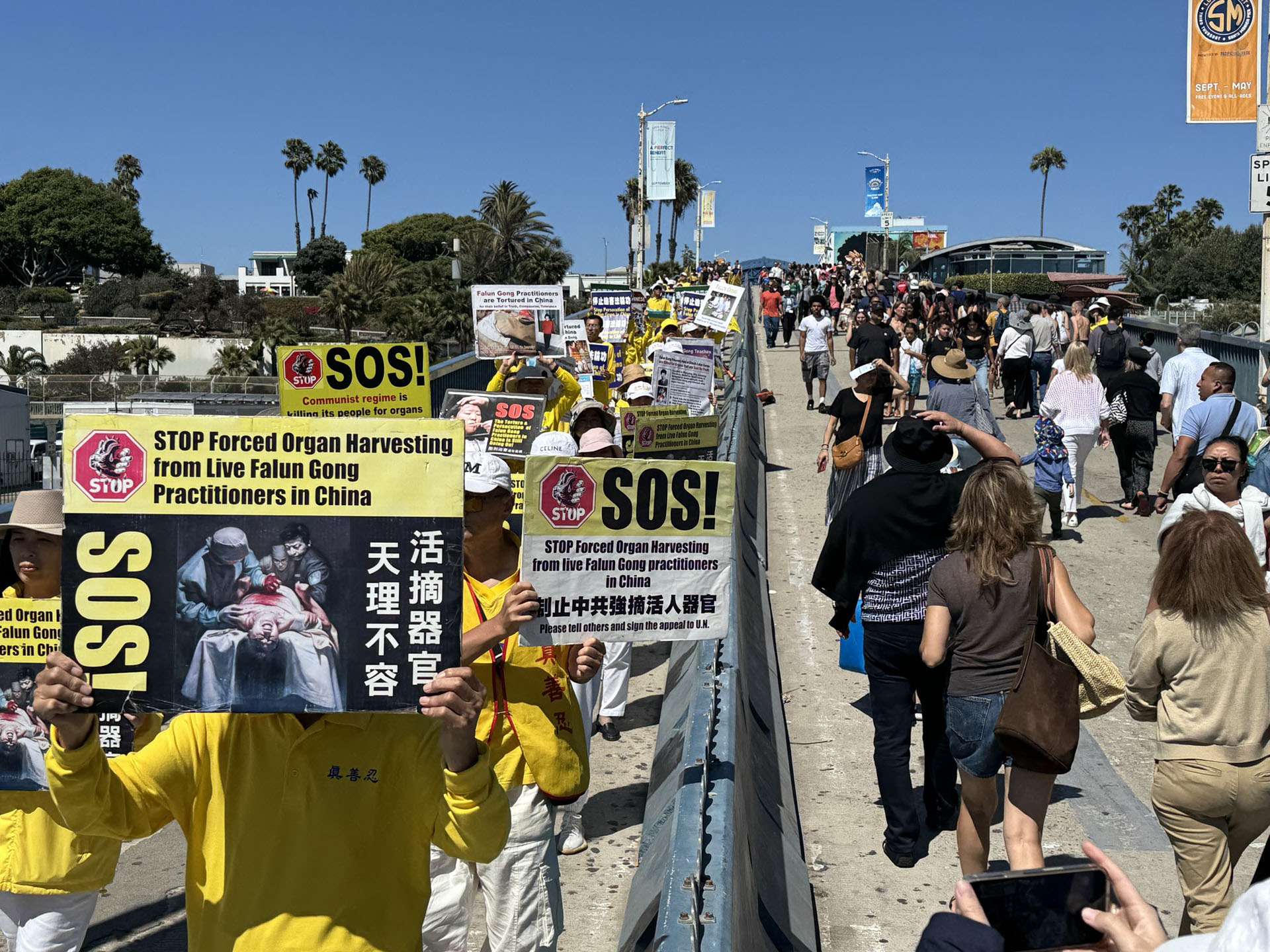 二零二五年七月二十七日(週日),上百名洛杉磯法輪功學員聚集在人潮如織的加州旅遊勝地聖莫妮卡碼頭(Santa Monica Pier),他們手持「活摘器官 天理不容」「停止迫害法輪功」等真相橫幅與標語,引起往來遊客注目和深思。有人表示:「這樣善良的群體不應該遭受如此對待。」