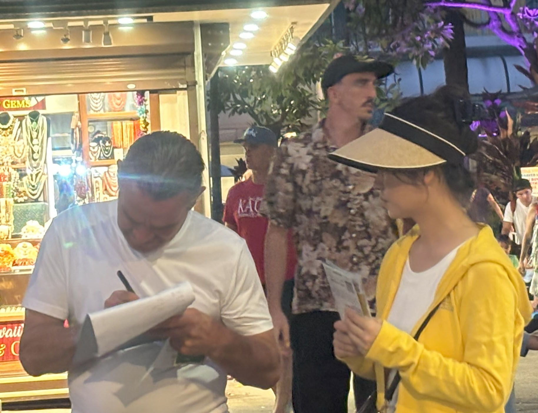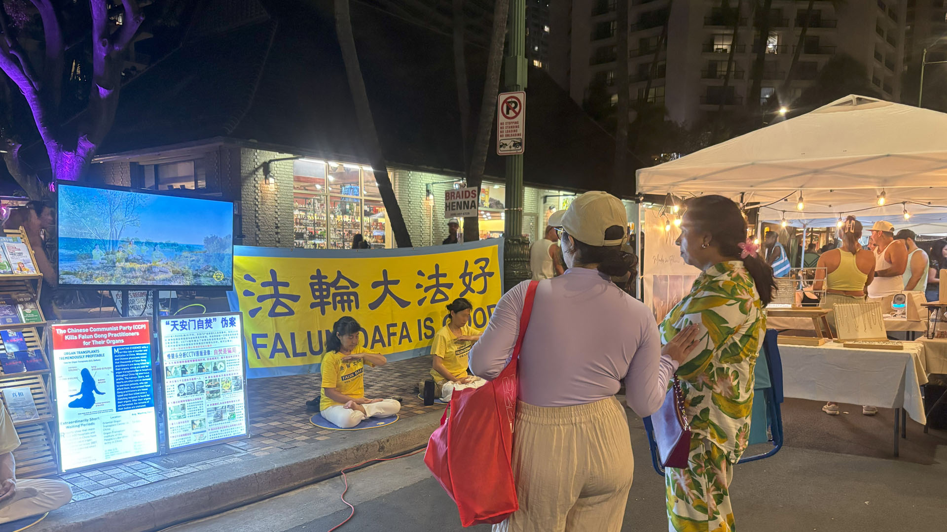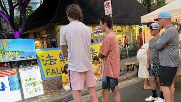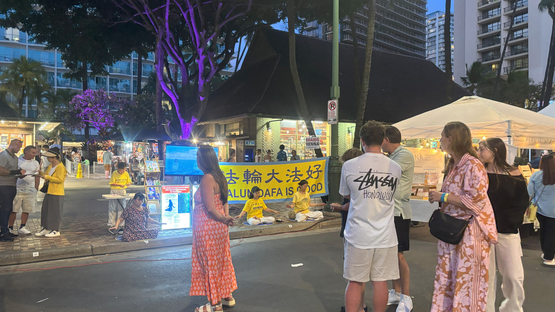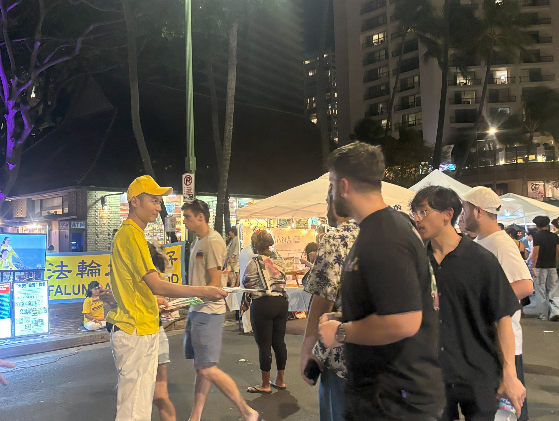 ![]() 圖1~5:二零二五年七月十九日晚,夏威夷的首府檀香山(Honolulu)學員在威基基(Waikiki)景區,向世人傳播法輪功真相。 |