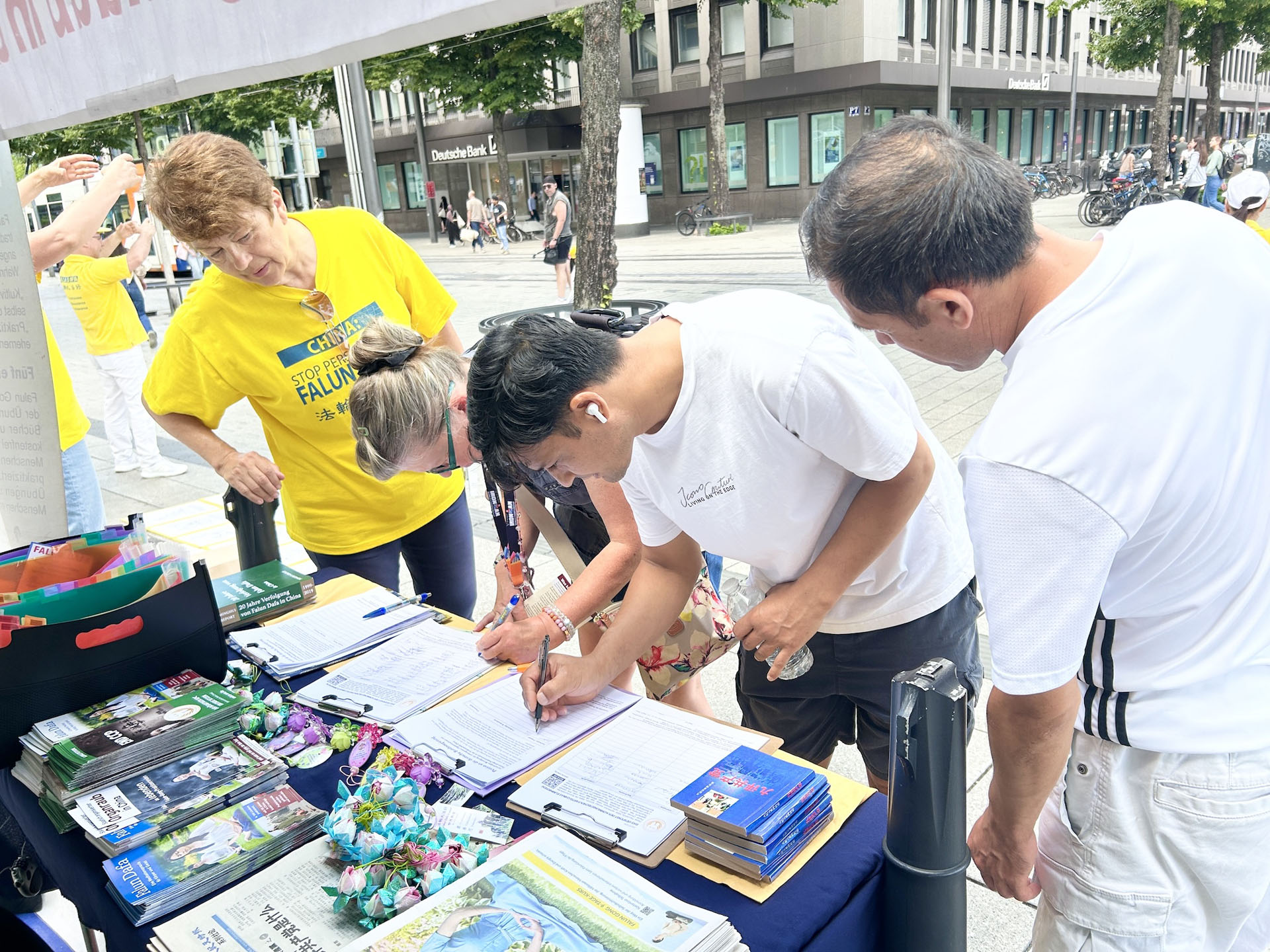 在活動現場,法輪功學員展示五套優美舒展的法輪功功法,希望向更多的人傳播這個以真、善、忍為普世價值觀、祛病健身、淨化心靈的、源於中國的古老佛家功法。經過展位的許多路人,在觀看揭露中共迫害法輪功學員罪行的信息,並跟法輪功學員交談,了解事實真相後,紛紛伸出援手,簽名聲援法輪功學員的反迫害活動,同時譴責中共對人權的侵犯和踐踏。