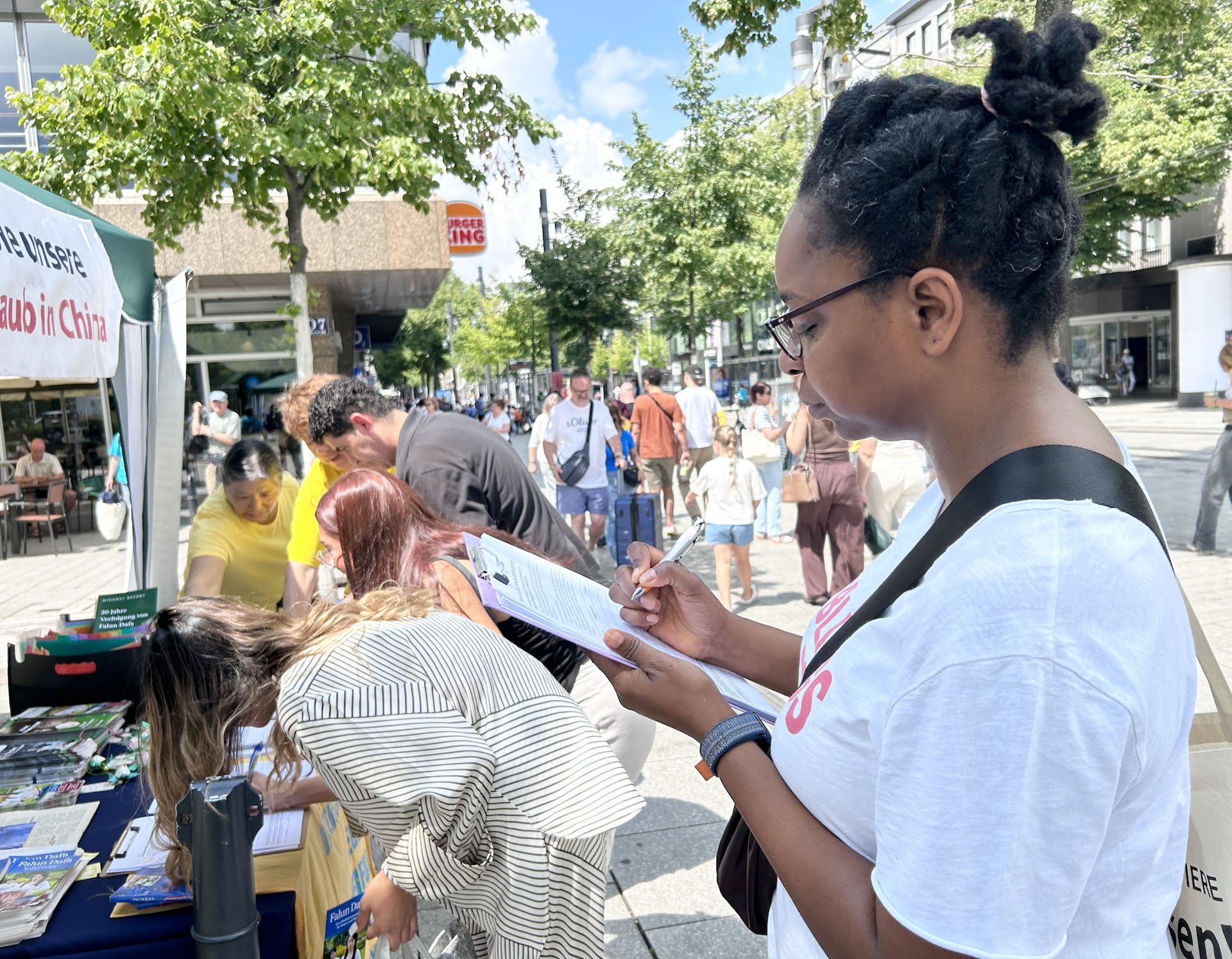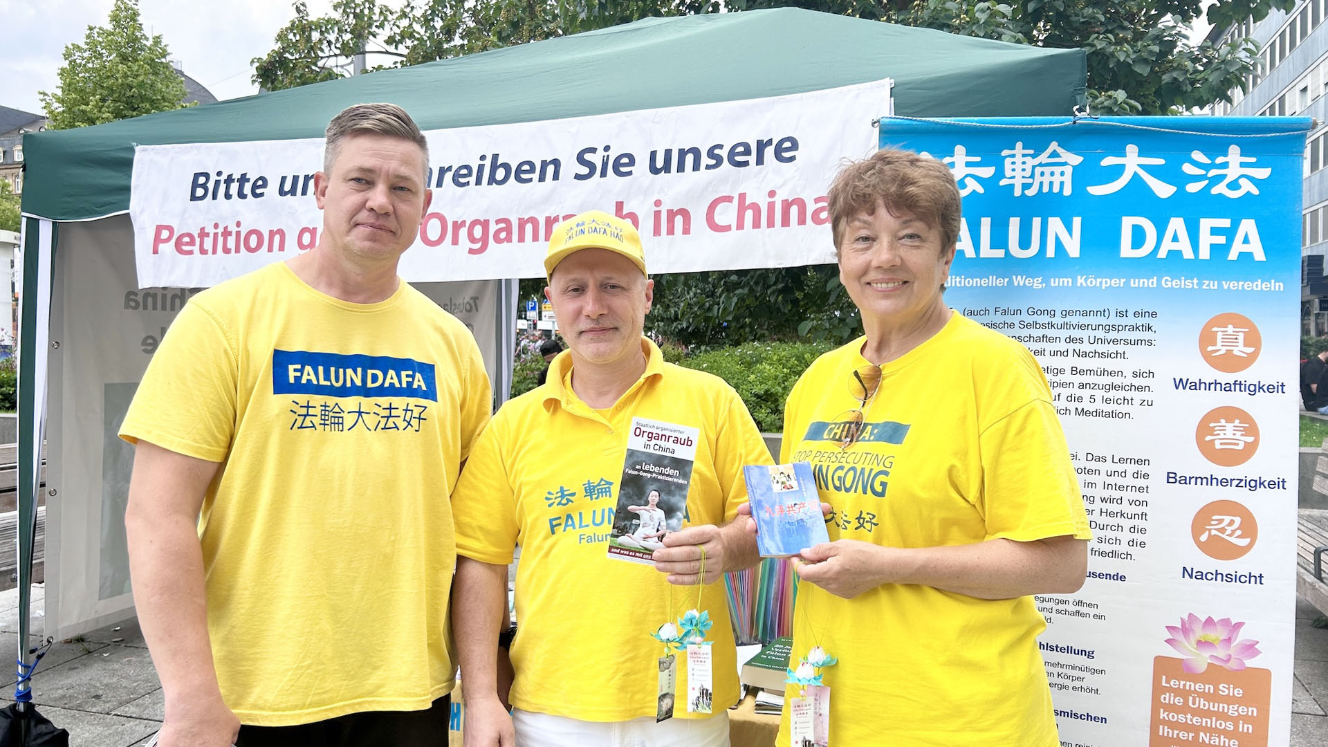 參加活動的烏克蘭裔法輪功學員尤莉亞(Yuliia)在三年前由於俄烏戰爭來到了德國。尤莉亞回憶說:「二零零七年,一個朋友向我推薦法輪大法。《轉法輪》這本書我讀了一遍,然後就把她放在了一邊五年。當時我擔心自己無法踐行書中的原則。」