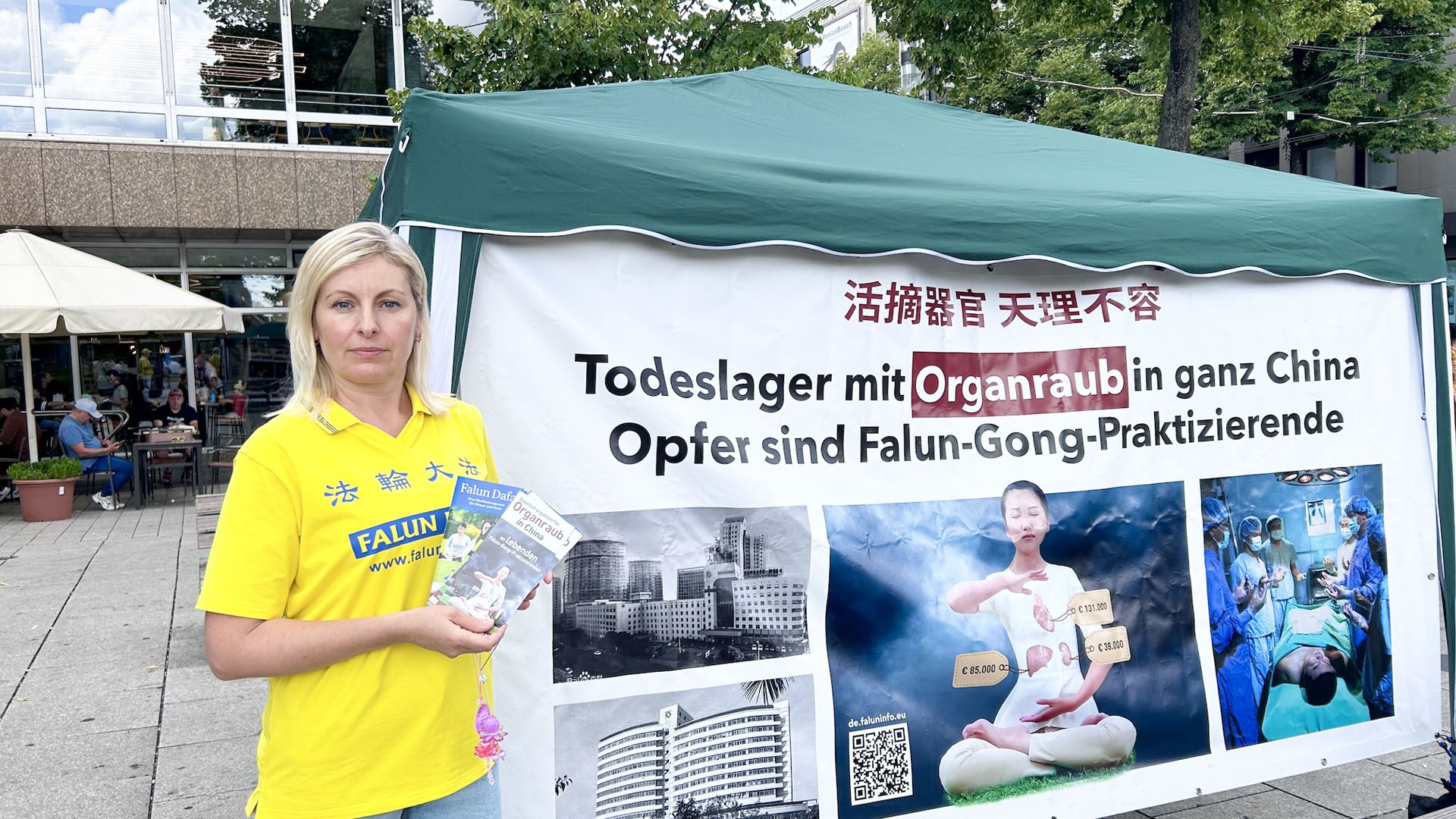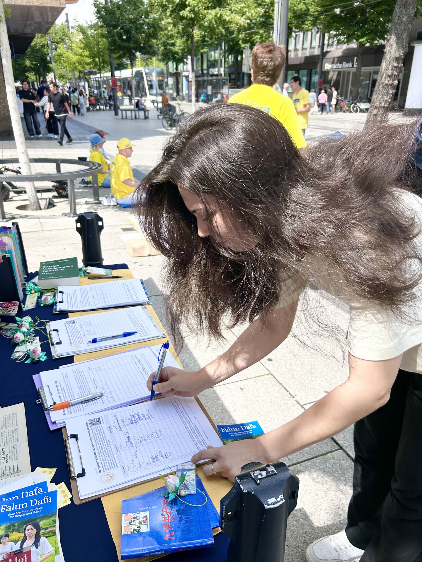 尤莉亞說:「我想告訴更多的人(中共)對法輪功的迫害,並幫助簽署反對活摘法輪功學員器官的請願書。」