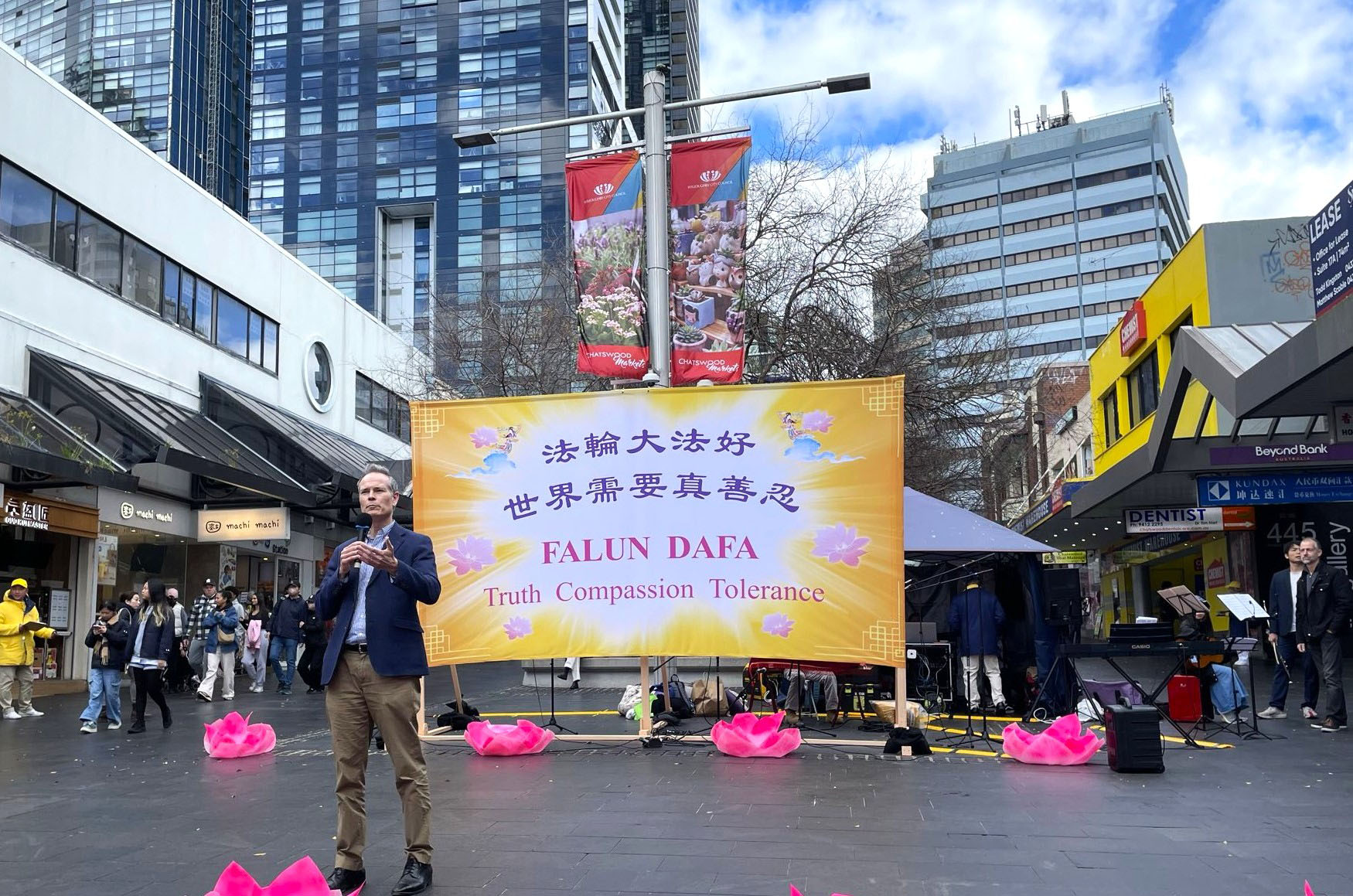 他繼續說道:「中國對法輪功學員的對待方式是我們所譴責的……在澳大利亞,我們遵循信仰自由、思想自由、言論自由、結社自由。這些是支撐西方文明乃至我們現代世界的基本人權。沒有自由,我們作為人類就無法繁榮發展,無法過上最充實的生活。」