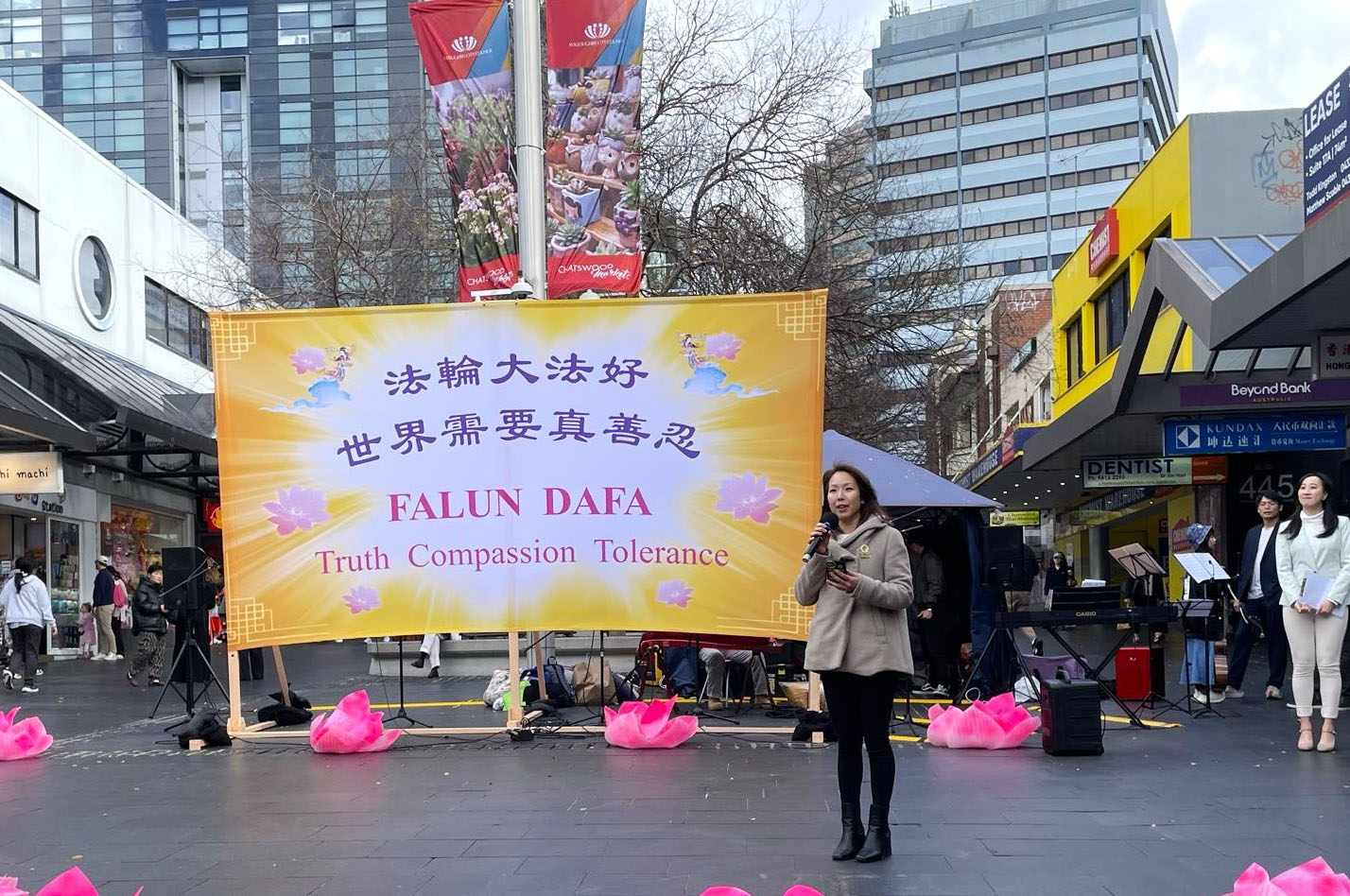 她鼓勵澳洲法輪功學員,繼續向社區「分享你們的文化。」