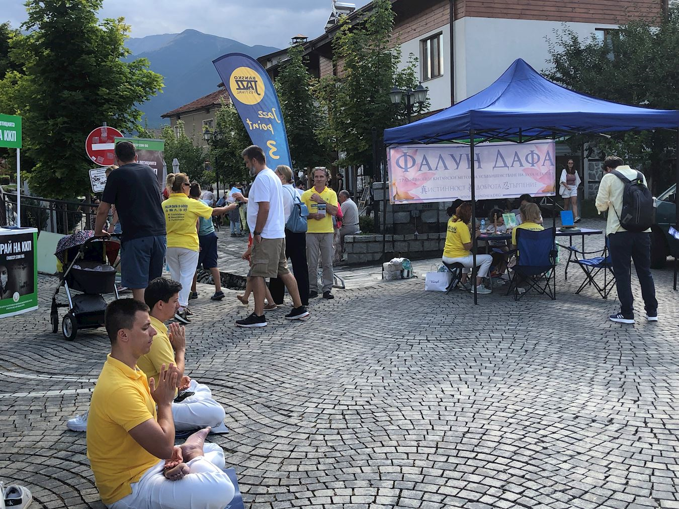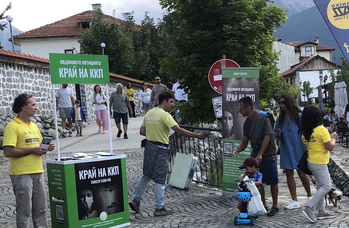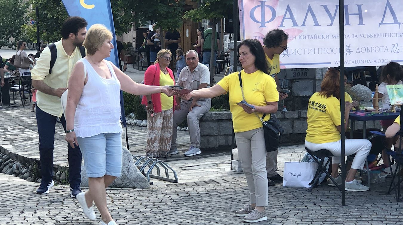 八月二日至三日,學員們在班斯科中央公園集體煉功,並向路人分發傳單。八月二日下午,學員們在戈策﹒德爾切夫紀念碑(Monument of Goce Delchev)前設置信息台,向民眾介紹法輪功真相,同時展示五套功法。許多人得知中共對善良的修煉人強制摘取器官的事實後,紛紛在請願書上簽名。