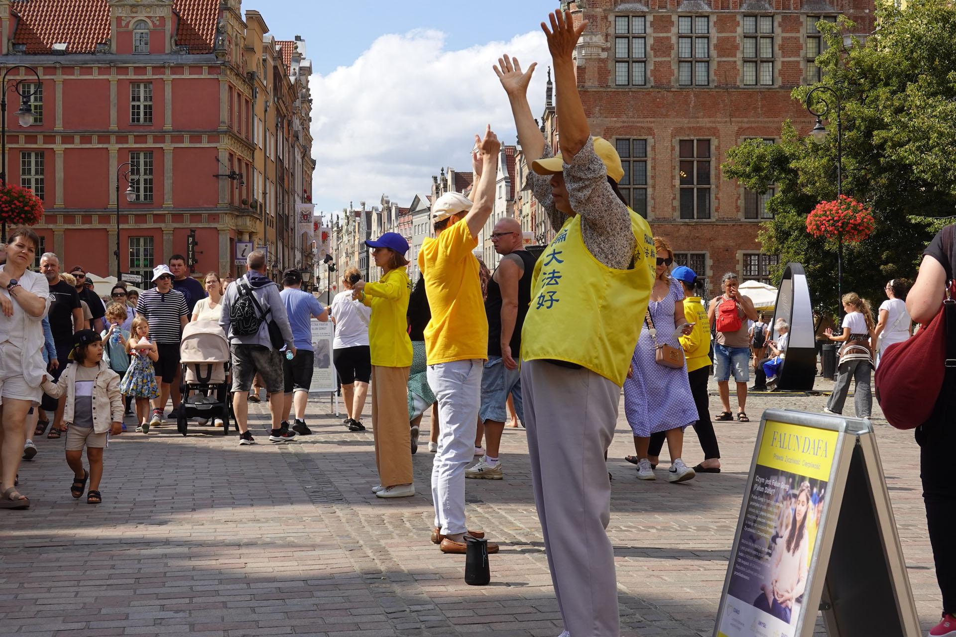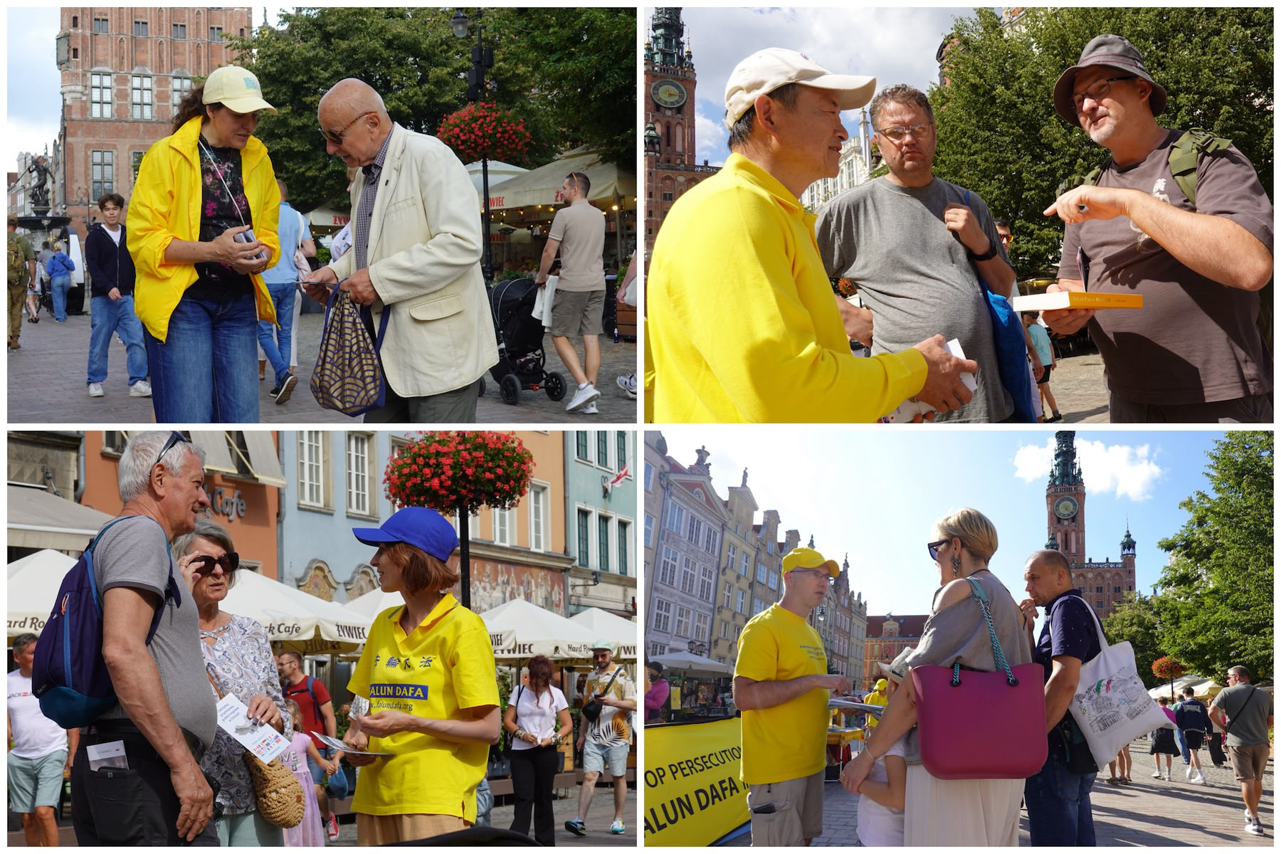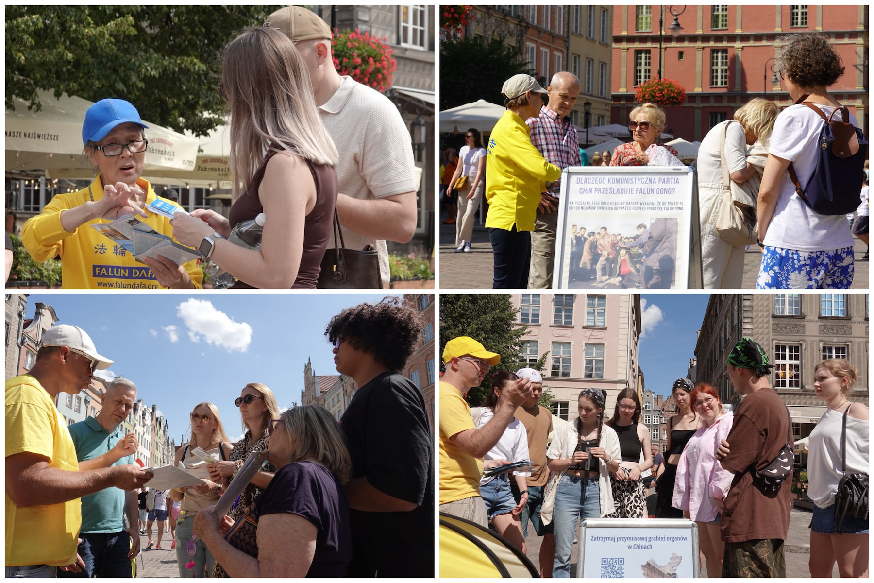 二零二五年七月二十六日和二十七日及八月九日和十日,波蘭部份法輪功學員利用週末時間在格但斯著名的長街(Długa Street - the Long Lane)廣場舉辦弘法活動,受到中外遊客的極大關注。眾人不僅紛紛參加徵簽,譴責中共活摘器官的犯罪行為,呼籲伸張正義,停止迫害法輪功,而且有很多人對法輪功產生極大的興趣,在認同真、善、忍理念的同時,購買法輪大法的主要著作《轉法輪》並要求學煉法輪功。