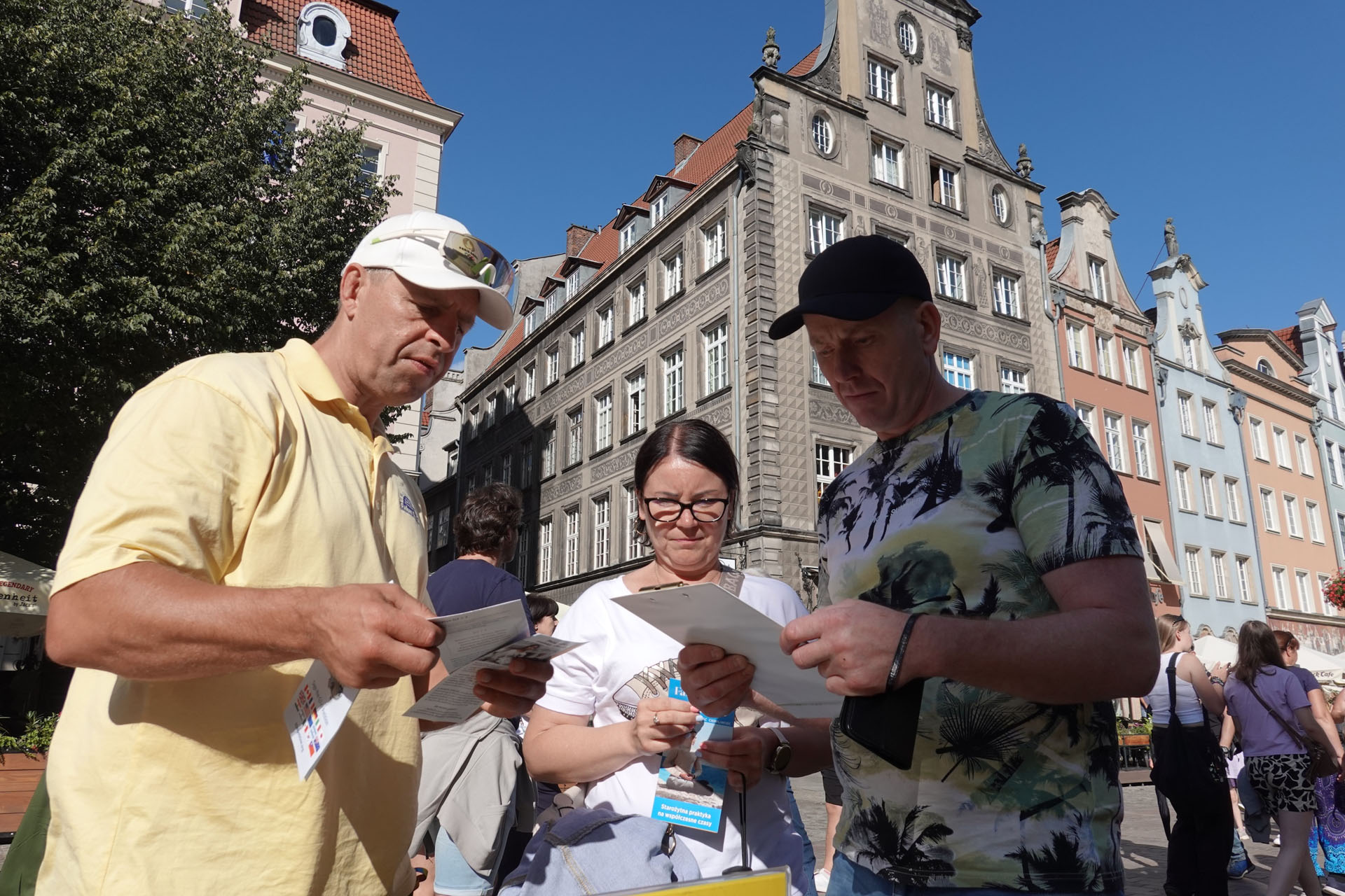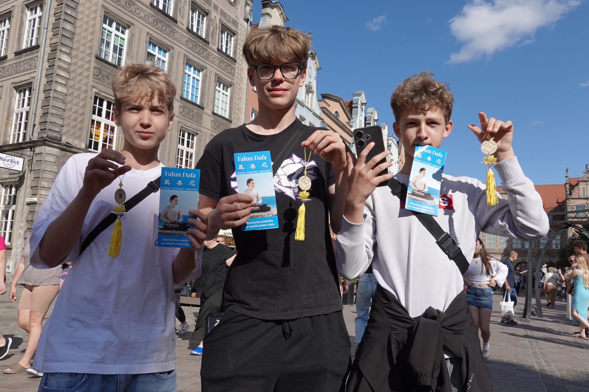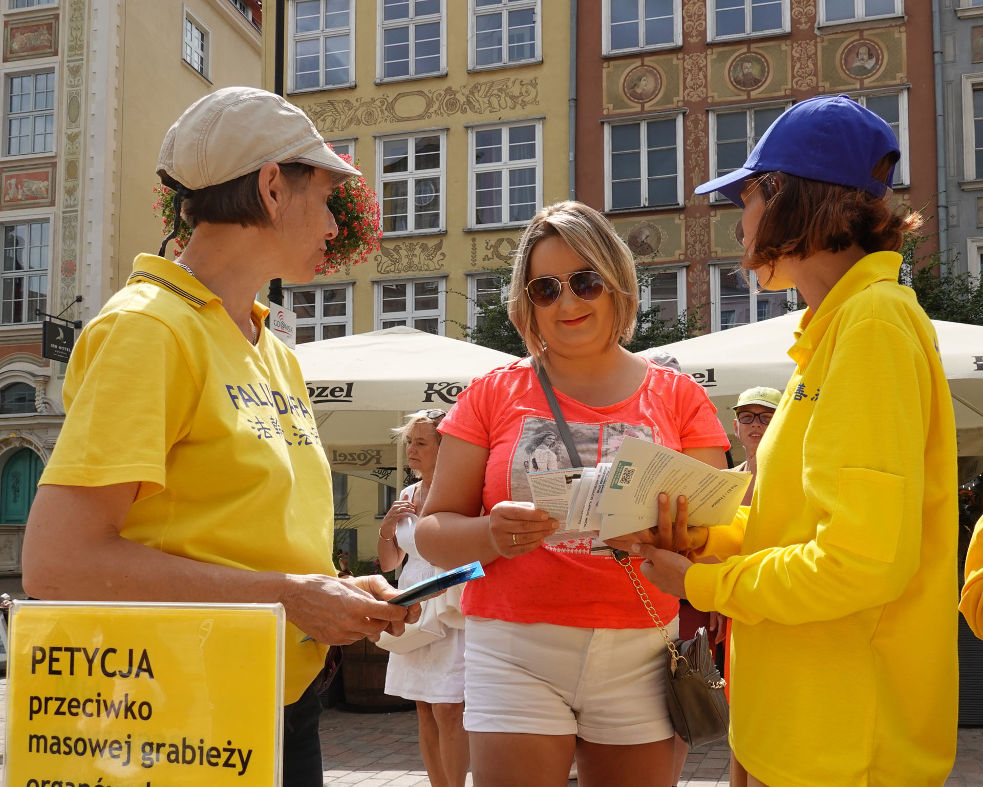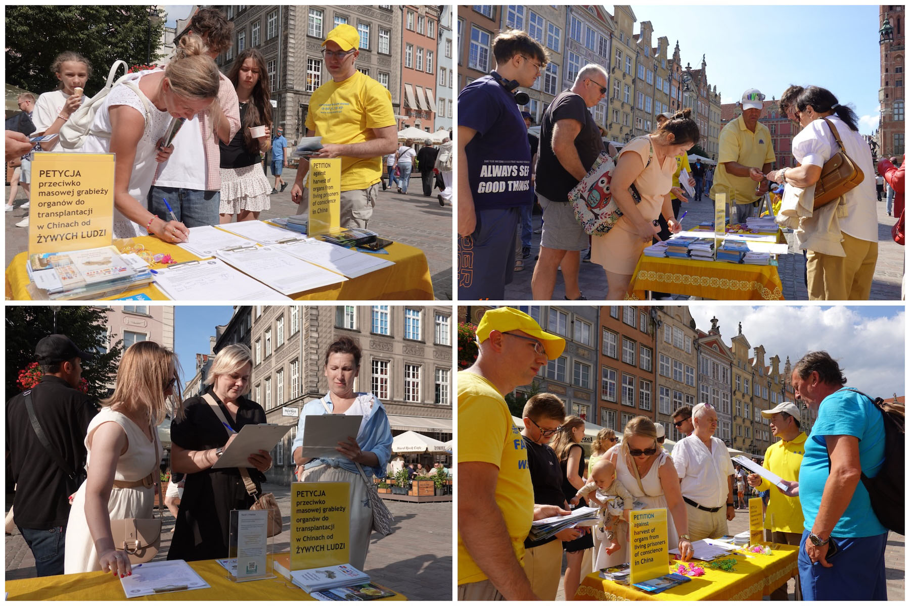 二零二五年七月二十六日和二十七日及八月九日和十日,波蘭部份法輪功學員利用週末時間在格但斯著名的長街(Długa Street - the Long Lane)廣場舉辦弘法活動,受到中外遊客的極大關注。眾人不僅紛紛參加徵簽,譴責中共活摘器官的犯罪行為,呼籲伸張正義,停止迫害法輪功,而且有很多人對法輪功產生極大的興趣,在認同真、善、忍理念的同時,購買法輪大法的主要著作《轉法輪》並要求學煉法輪功。