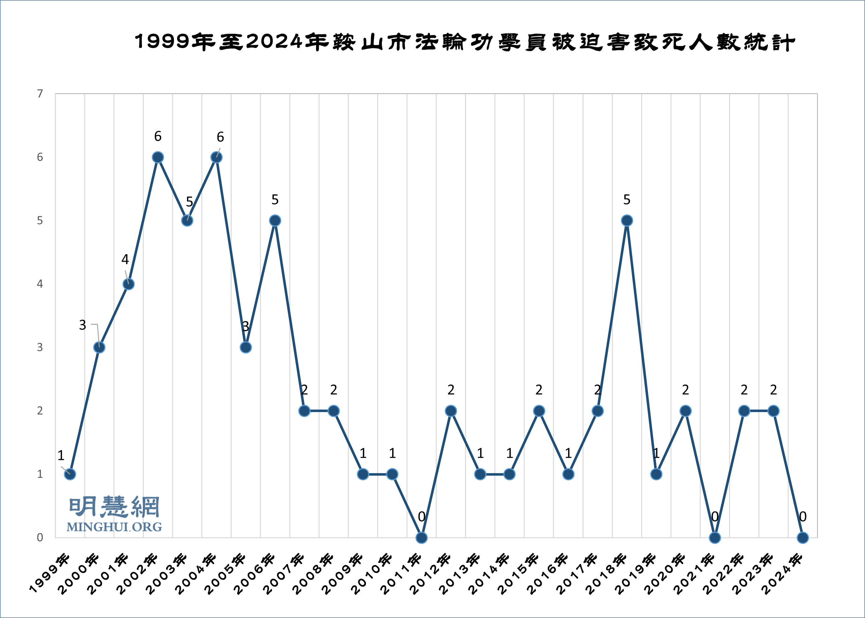 ![]() 圖2:1999~2024年鞍山市法輪功學員被迫害致死人數統計 |
