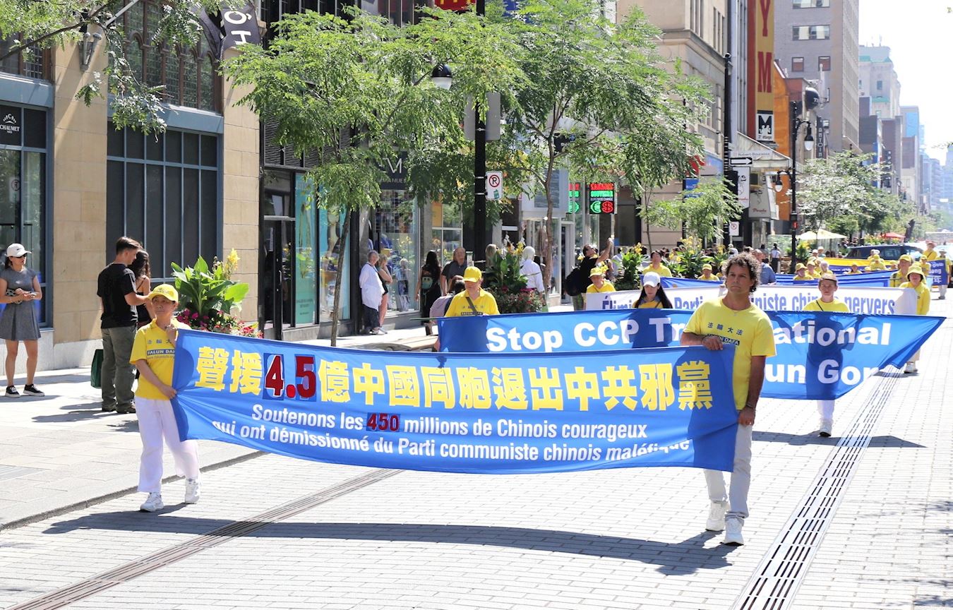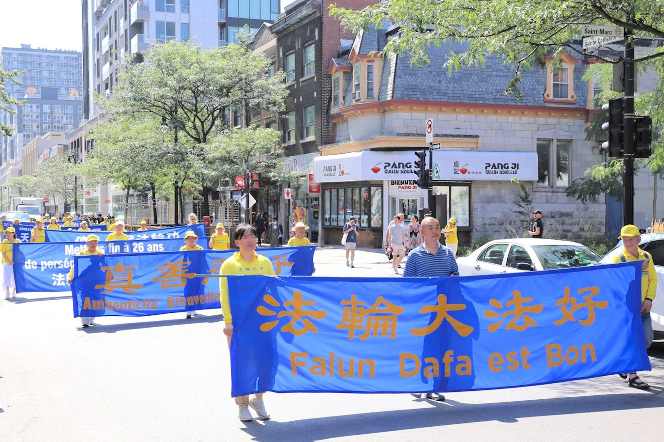 遊行隊伍由法輪功學員組成的天國樂團和橫幅方陣組成,在市中心最繁華的主幹道──聖凱瑟琳大街和赫內・列維斯克大街上行進。抵達終點菲利浦廣場後,法輪功學員舉行了集會。