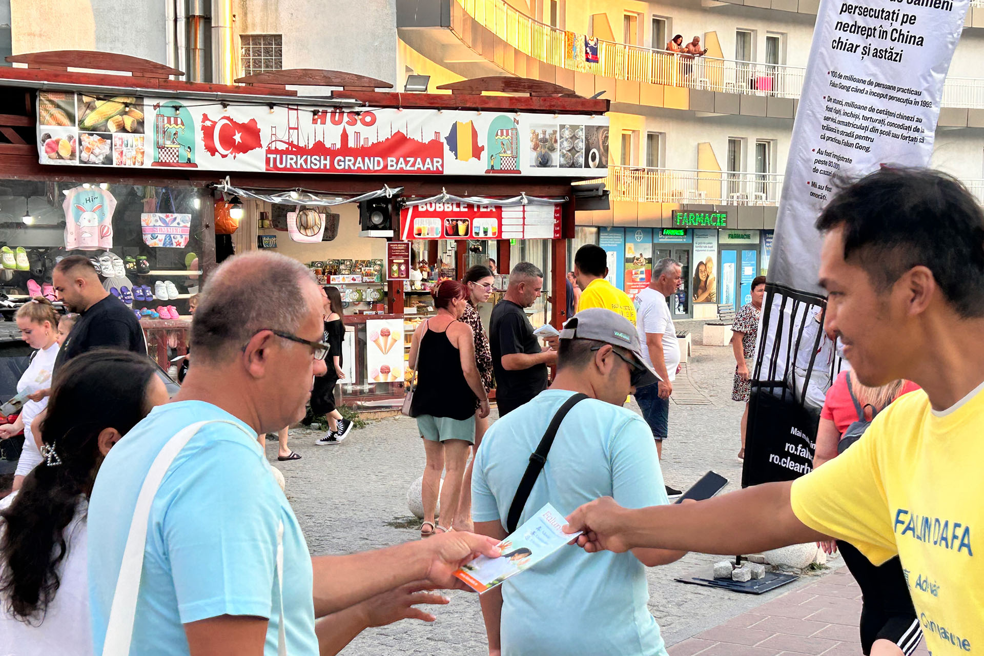 【明慧網二零二五年八月二十一日】二零二五年八月八日至十二日,羅馬尼亞法輪功學員分別在馬馬亞(Mamaia)、曼加利亞港(Mangalia Harbour)、北埃福列(Eforie Nord)、南埃福列(Eforie Sud)和康斯坦察(Constanța)等五座城市舉辦信息日活動,向民眾介紹法輪功和中共迫害的真相。