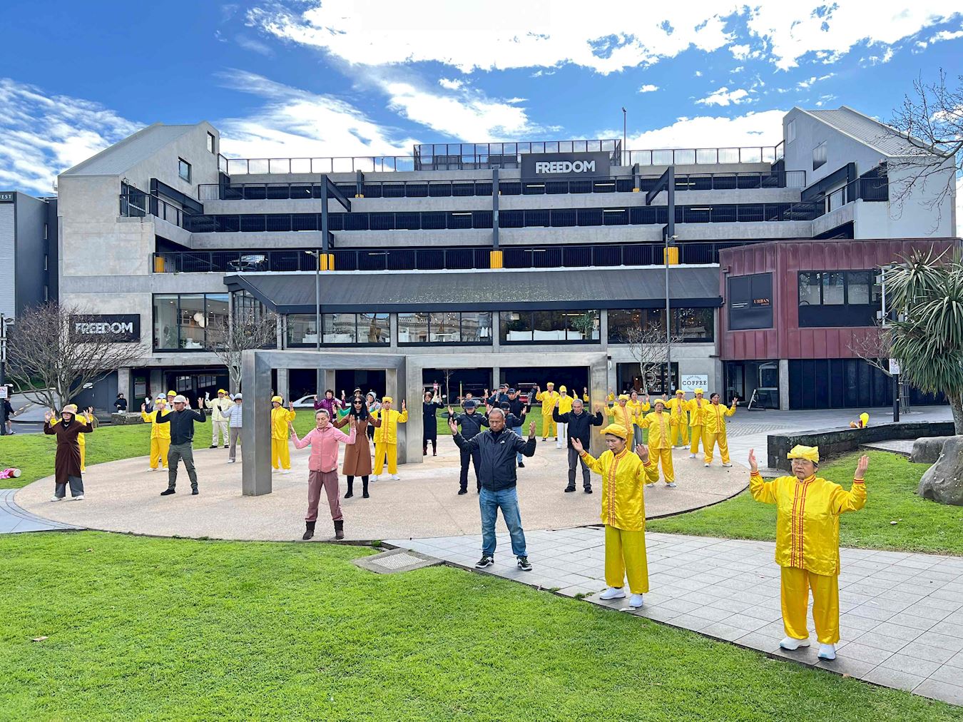![]() 圖1~8:二零二五年八月二十三日,新西蘭奧克蘭法輪功學員在新市場的Lumsden Green公園煉功、集會,慶祝四億五千萬中國人退出中共黨、團、隊。 |