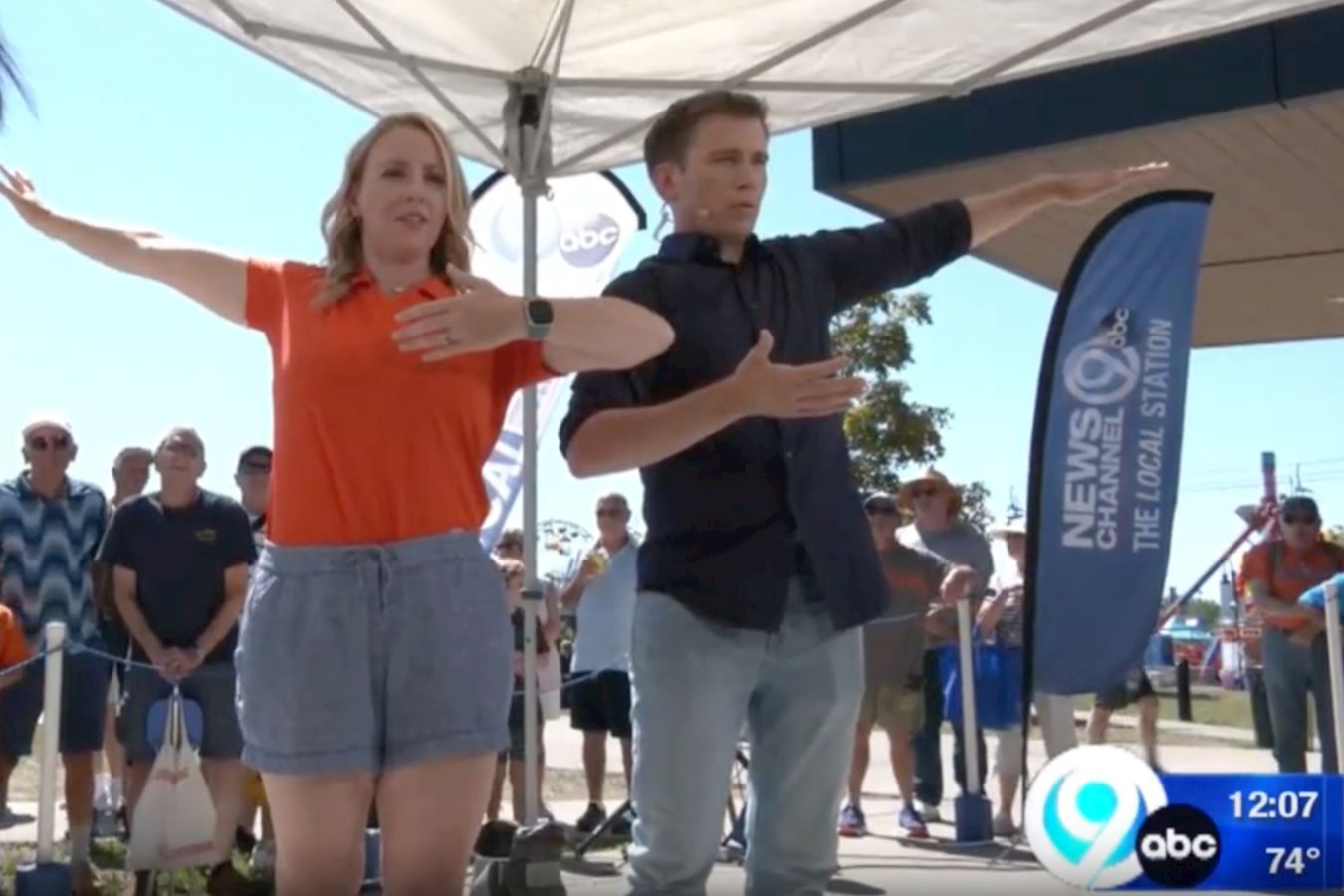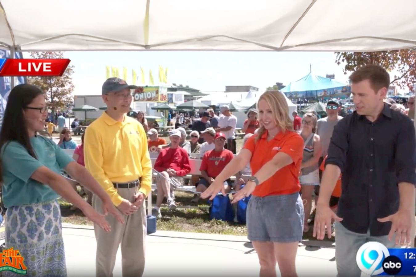 視頻:ABC電視台WSRY9台邀請學員進行現場直播採訪錄像介紹法輪功。兩位主持人親自學習了第一套功法「佛展千手法」。