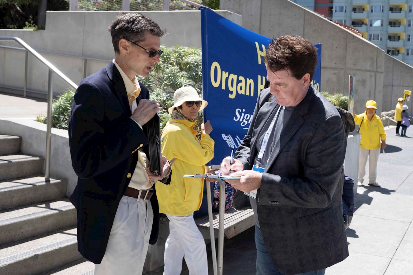 「反強摘器官醫生組織」(DAFOH)在美國西部的代表戴納﹒丘吉爾(Dana Churchill)表示,他從洛杉磯來舊金山,就是要告訴人們發生在中國的活摘法輪功學員器官罪行。他表示:「我們希望來參加大會的醫生了解活摘器官的事,大部份的醫生都支持我們。」