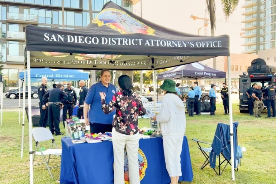 今年聖地亞哥法輪功學員參加了聖地亞哥市警察局、楚拉維斯塔市(Chula Vista)警察局和聖地亞哥縣警署舉辦的多個活動,並在聖地亞哥市警察局在巴博亞公園(Balboa Park)附近舉行的一個活動中擺設了真相信息展位。