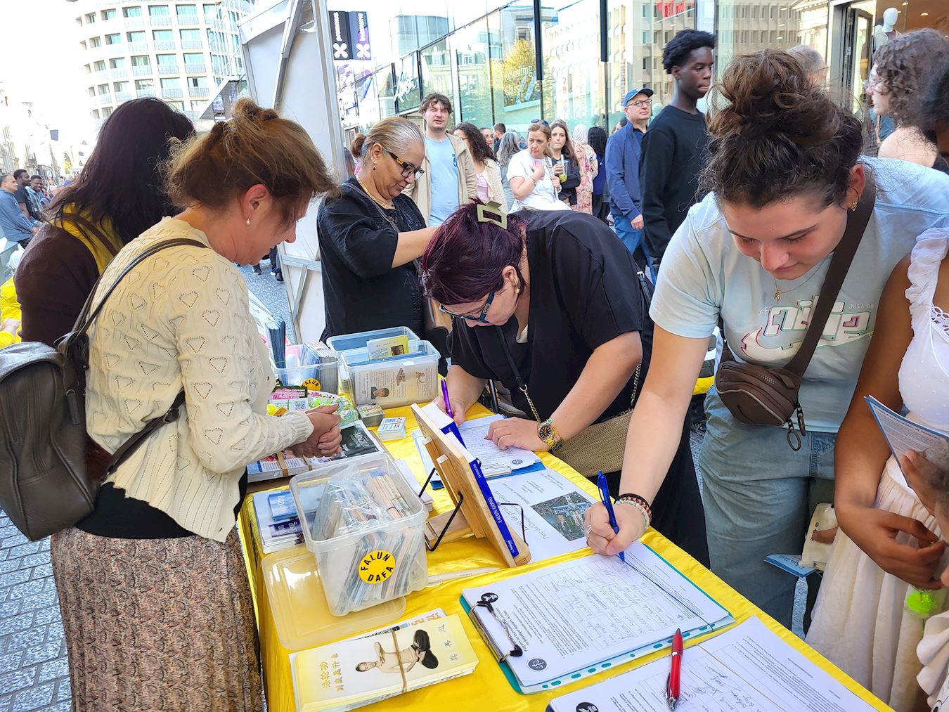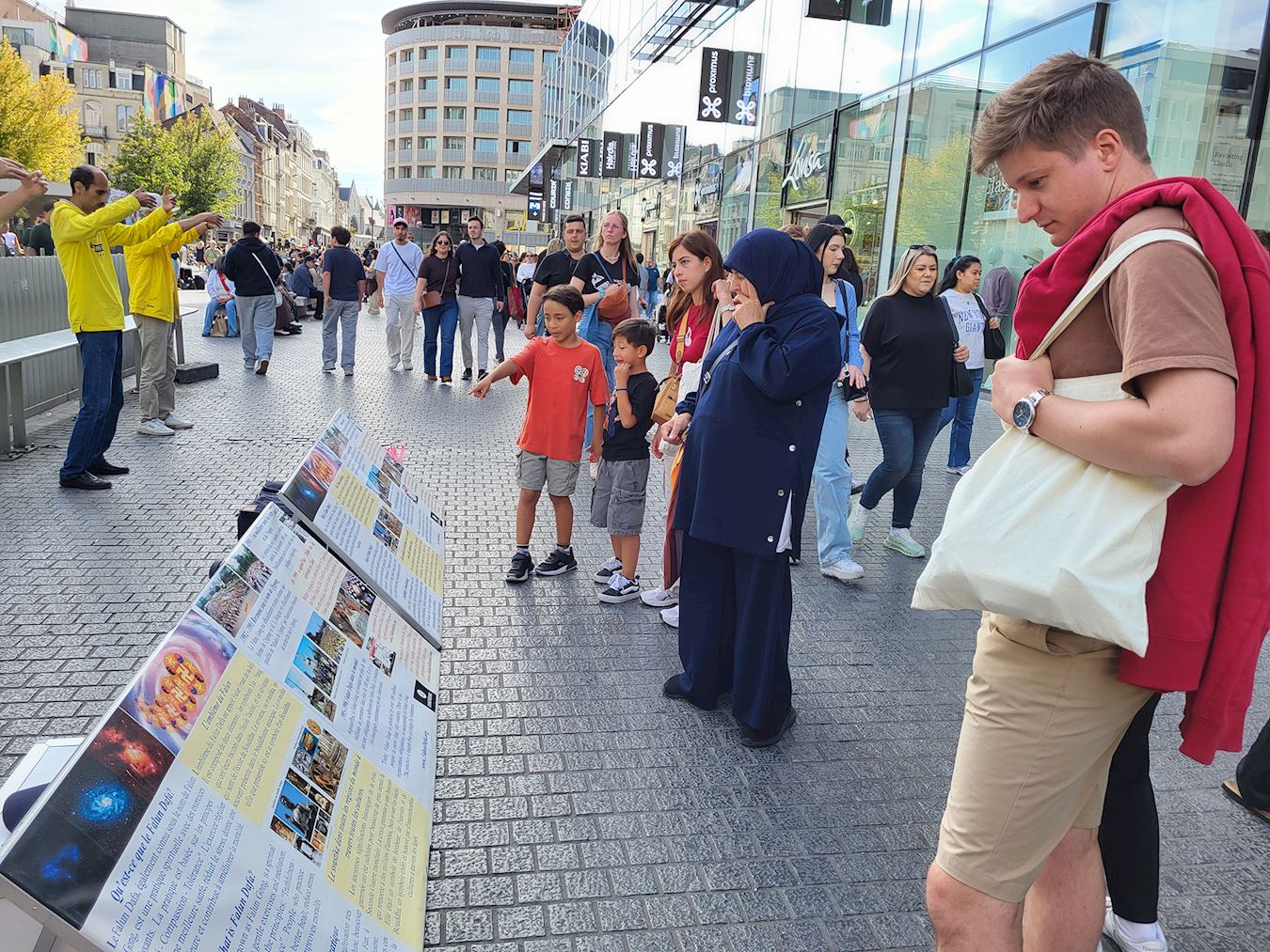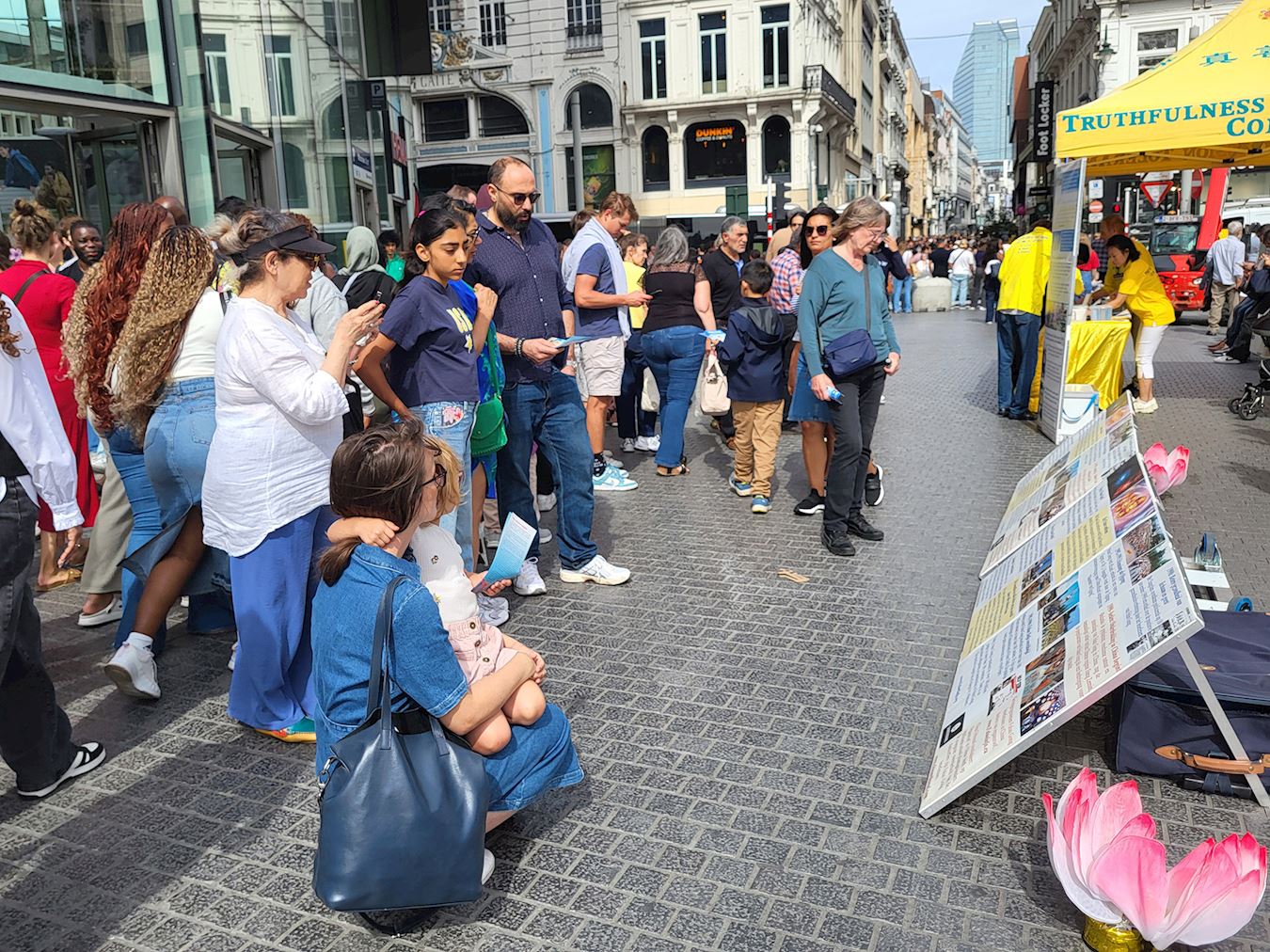 ![]() 圖1~4:二零二五年九月八日在布魯塞爾商業街法輪功學員反迫害活動,民眾圍觀了解法輪功及中共迫害的真相。 |