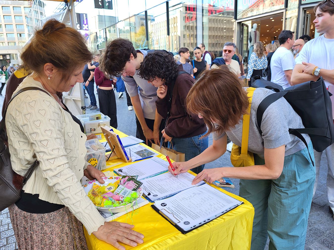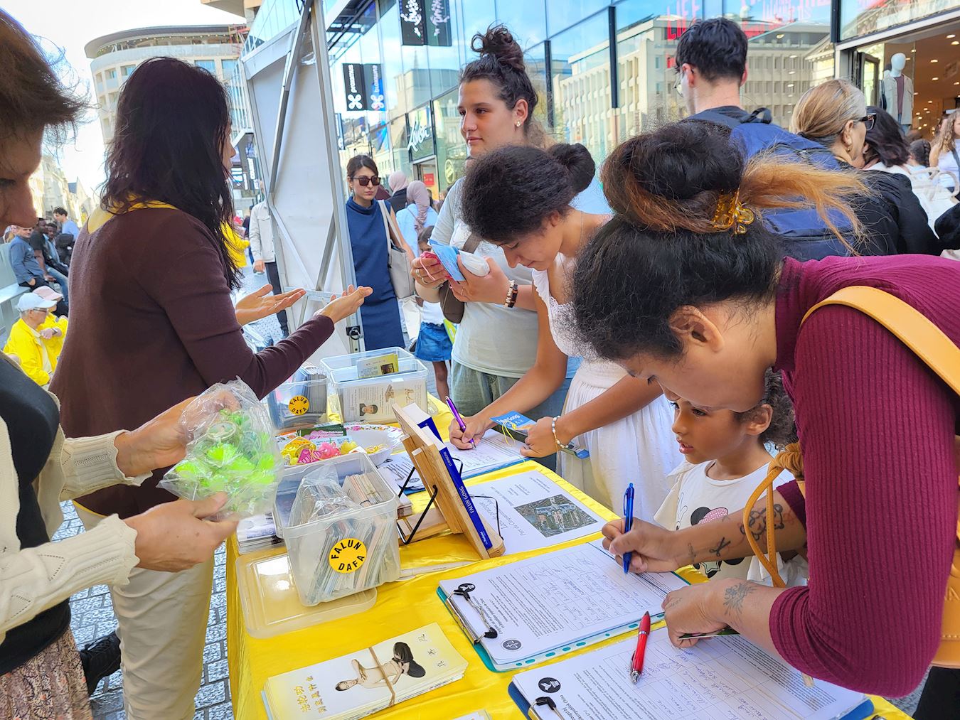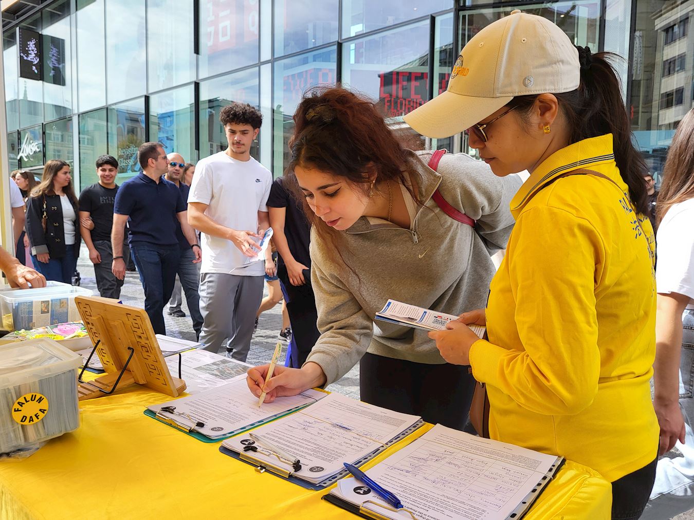 很多市民和遊客了解法輪功真相後,對中共的迫害,產生了強烈的反響:「這是一種暴行。我們必須採取行動反對它。」「這不是你可以說『以後再做』的事,因為這關於人的生命,是瞬間就會被奪走的事,不能等。」在歐洲課堂上已經了解迫害真相的學生,也表達了對迫害的憤怒和制止迫害的呼聲。