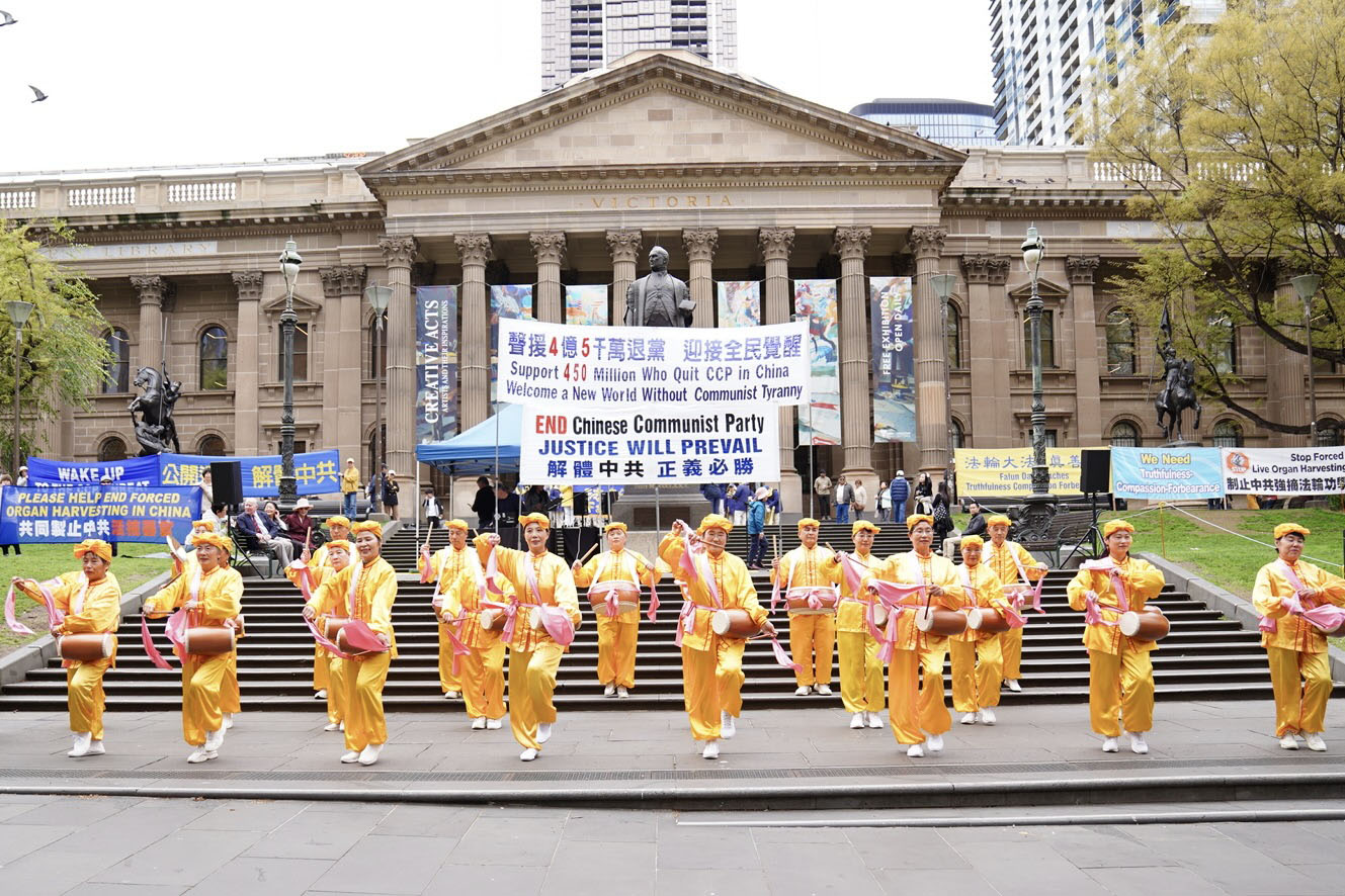 ![]() 圖1~6:二零二五年九月十三日,澳大利亞墨爾本州立圖書館前,舉行了慶祝4.5億中國勇士三退集會,吸引市民和遊客駐足了解詳情。 |