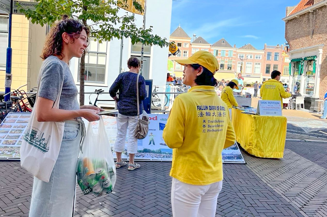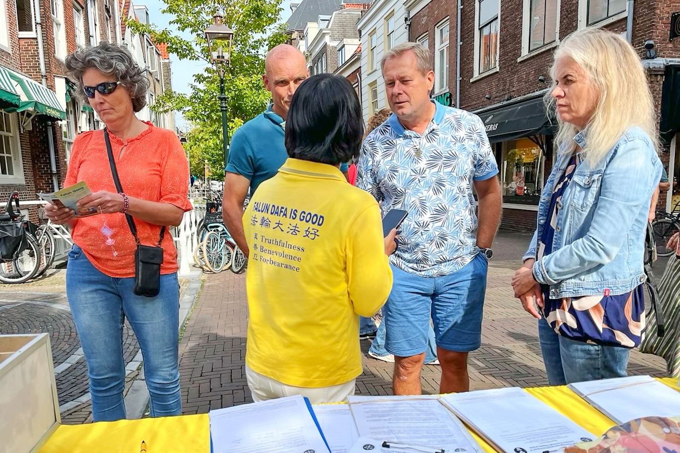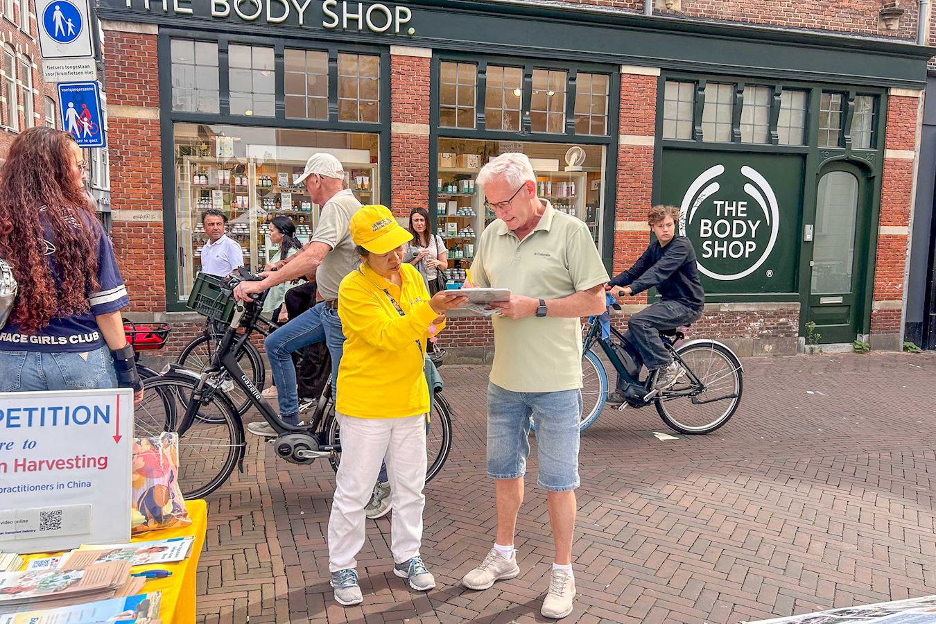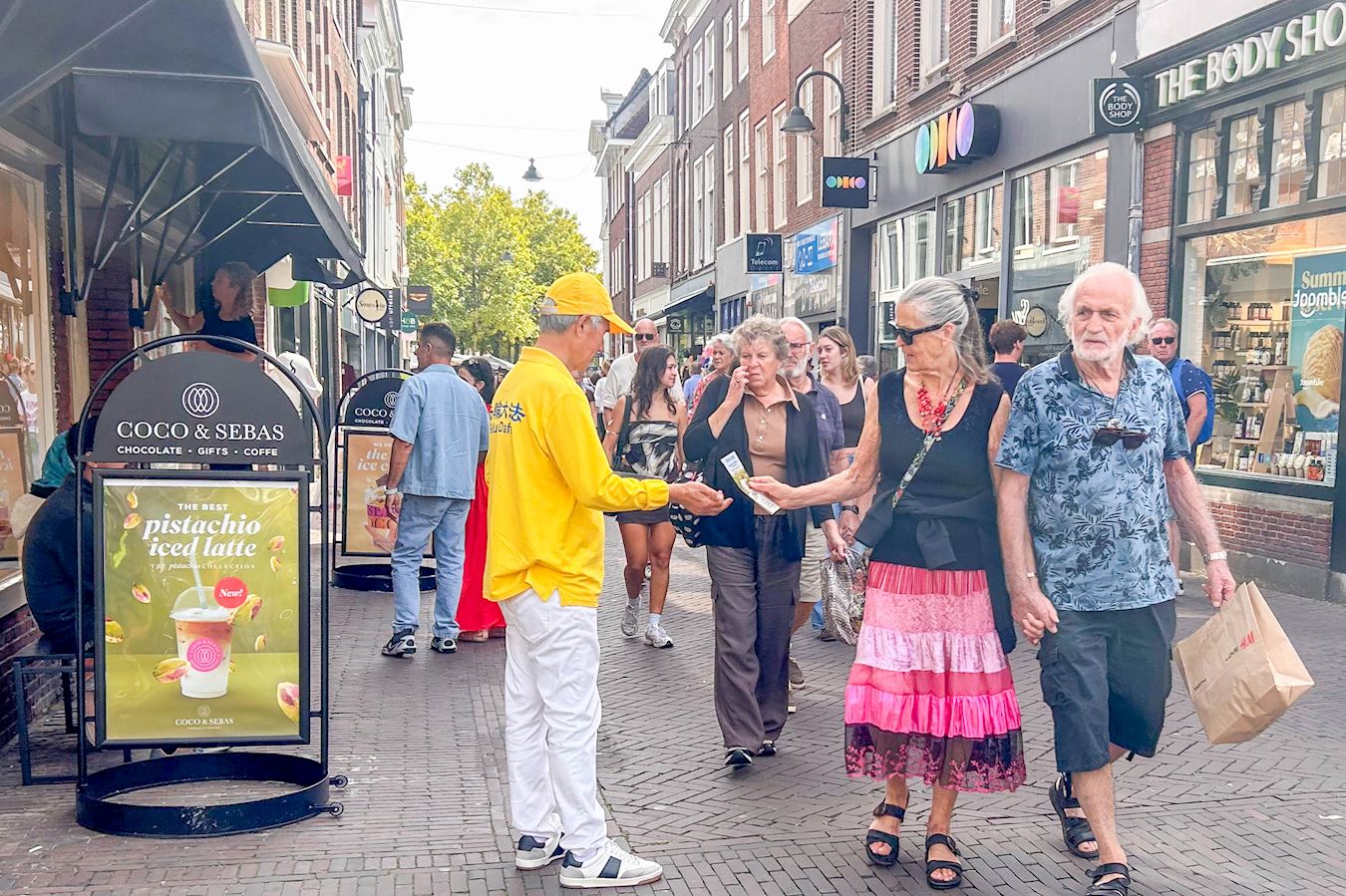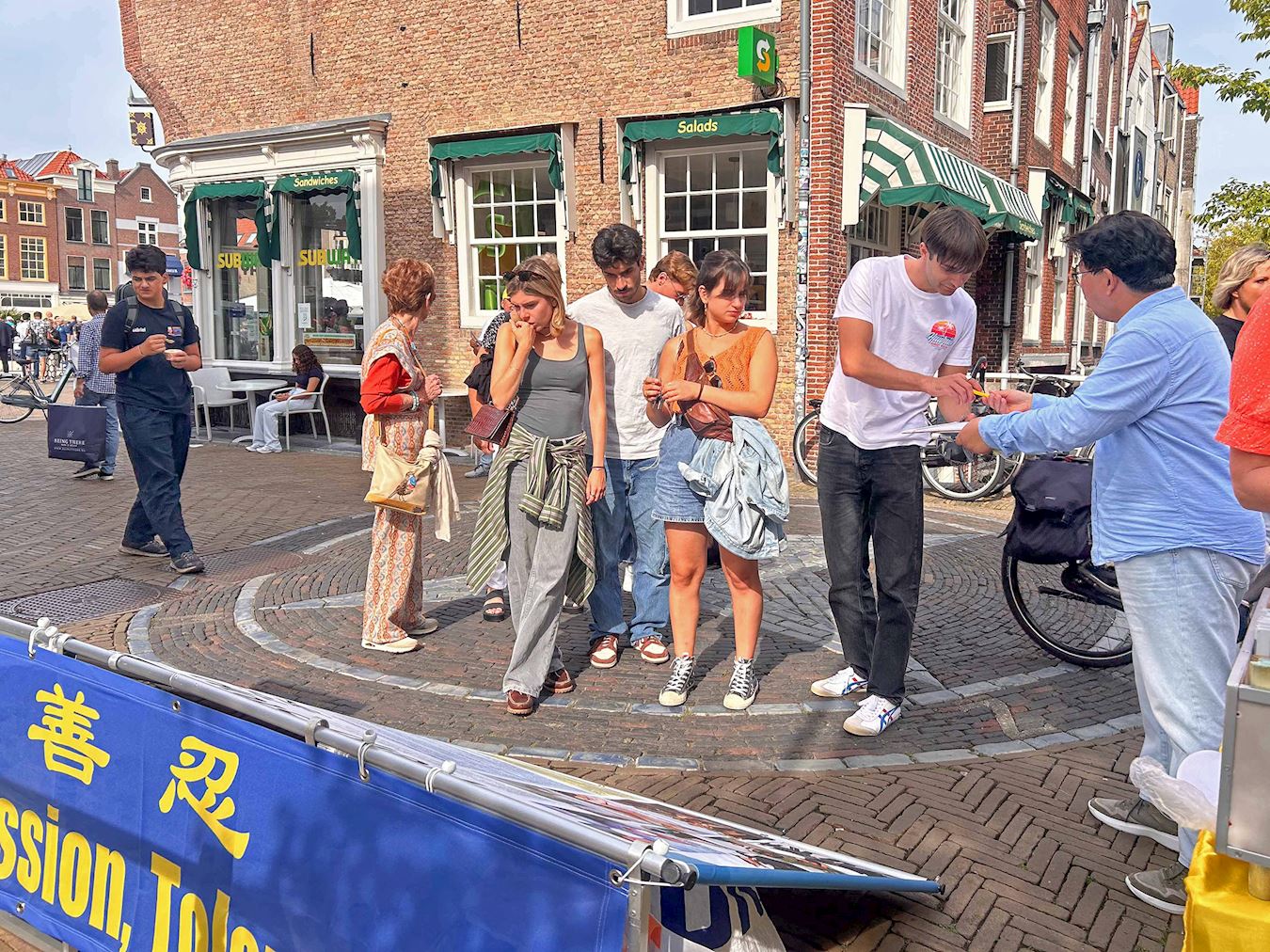 【明慧網二零二五年九月十七日】「我在英國也看到過跟你們穿的同樣衣服的人,也在講同樣的事。我還想多聽一些,工作日你們還會在這裏嗎?」一位荷蘭代爾夫特民眾說。