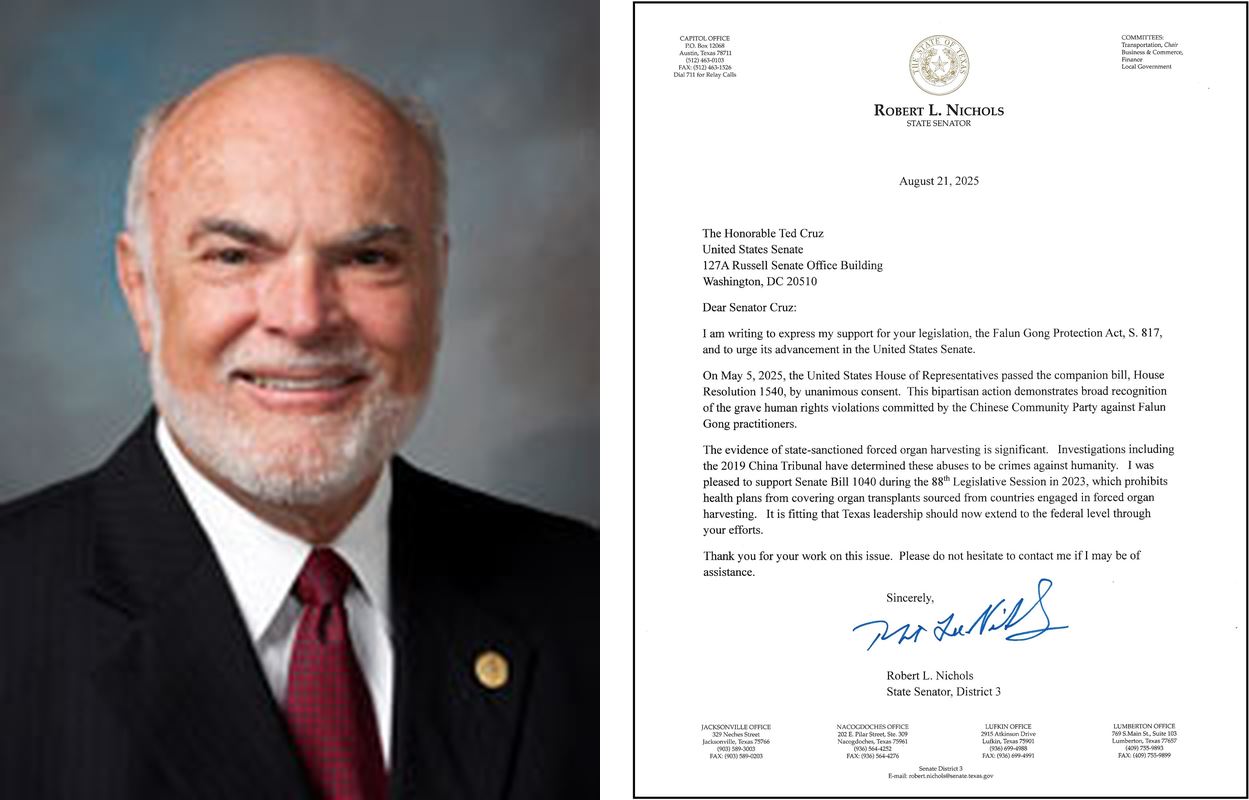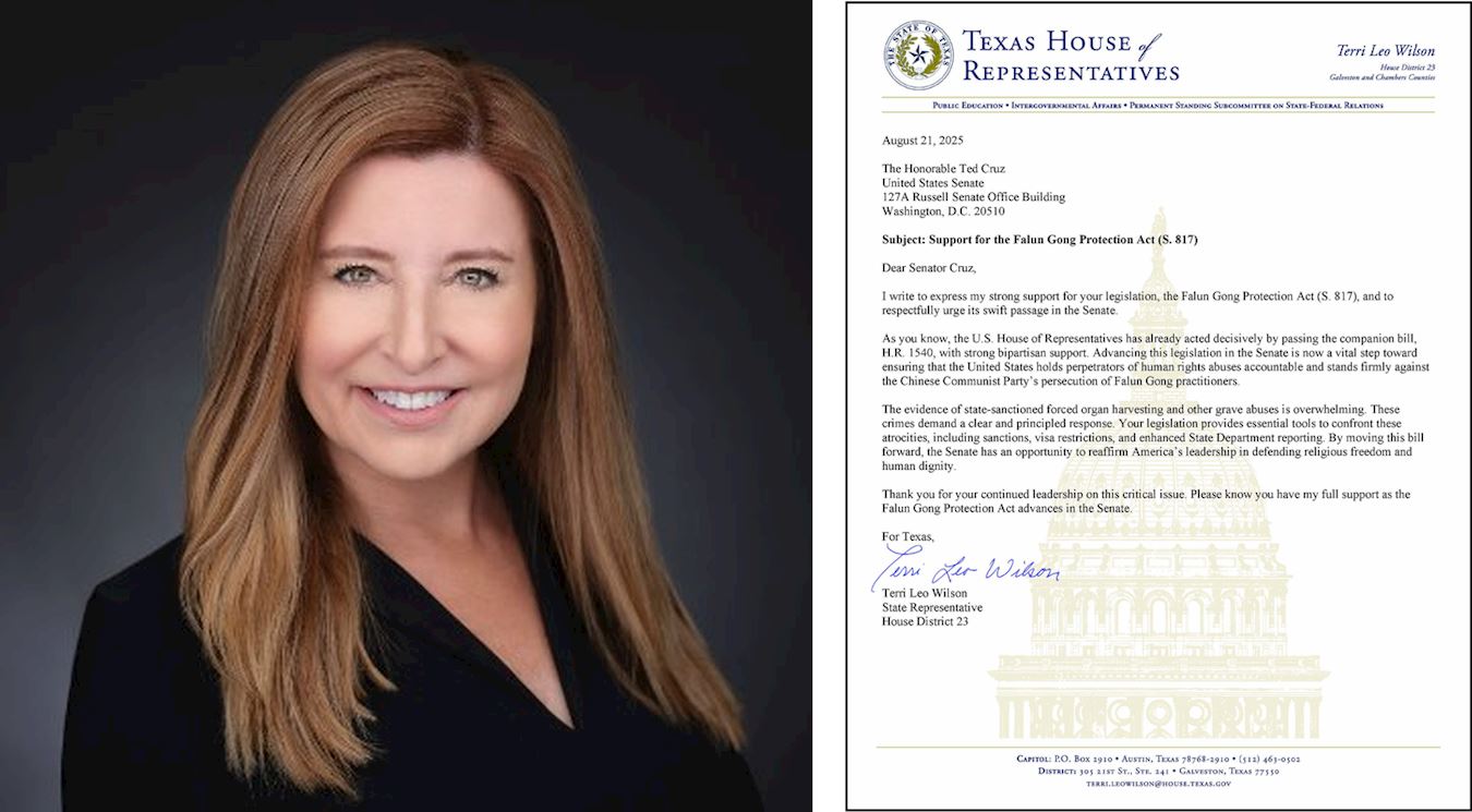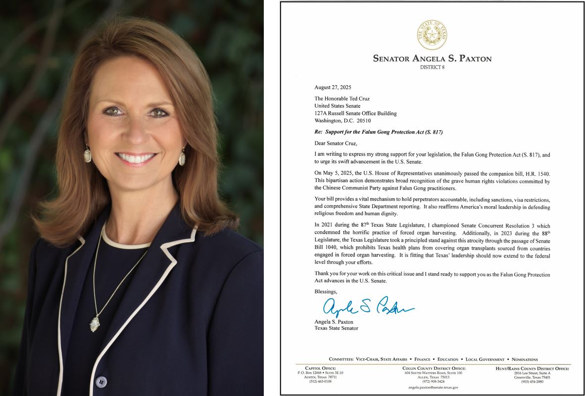 目前,又有包括德州參議院多數黨領袖安吉拉‧帕克斯頓(Angela Paxton)、德州眾議院多數黨領袖湯姆‧奧利弗森(Tom Oliverson)在內的十位德州重量級議員分別致信克魯茲參議員,強烈支持《法輪功保護法案》,並敦促這個具有歷史意義的法案迅速獲得通過。