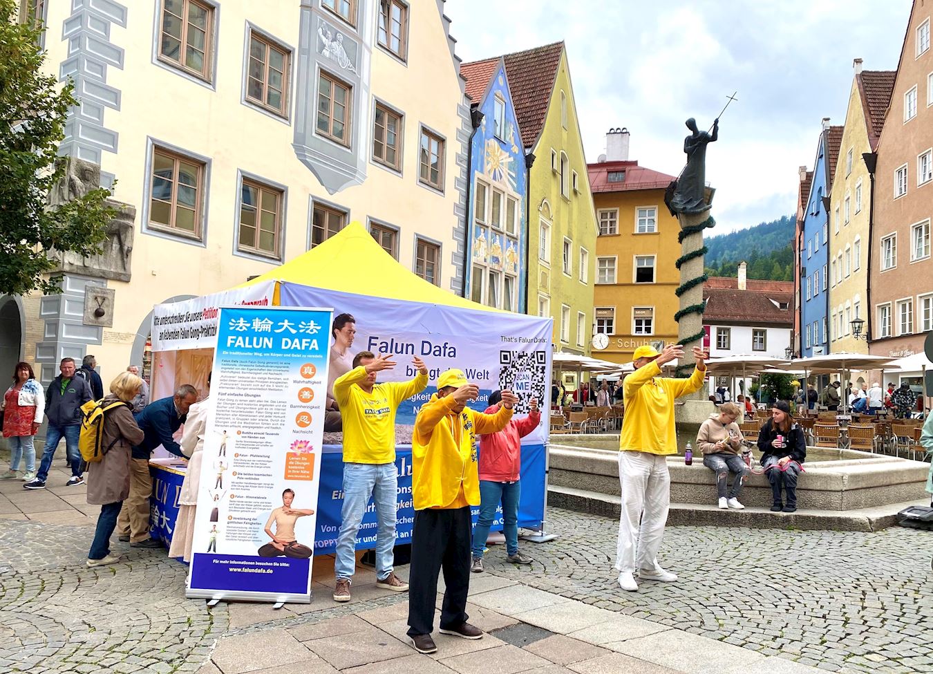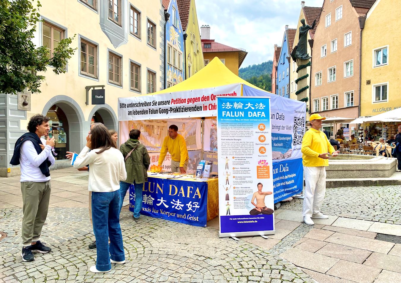 【明慧網二零二五年九月二日】(明慧記者德祥德國菲森報導)「請問,你們在菲森有沒有煉功點?」「在哪裏可以學煉法輪功?」「你們做的很好,請繼續努力。」二零二五年八月二十三日,法輪功學員在德國菲森(Füssen)舉辦了信息日活動,吸引了很多當地人與遊客的關注。