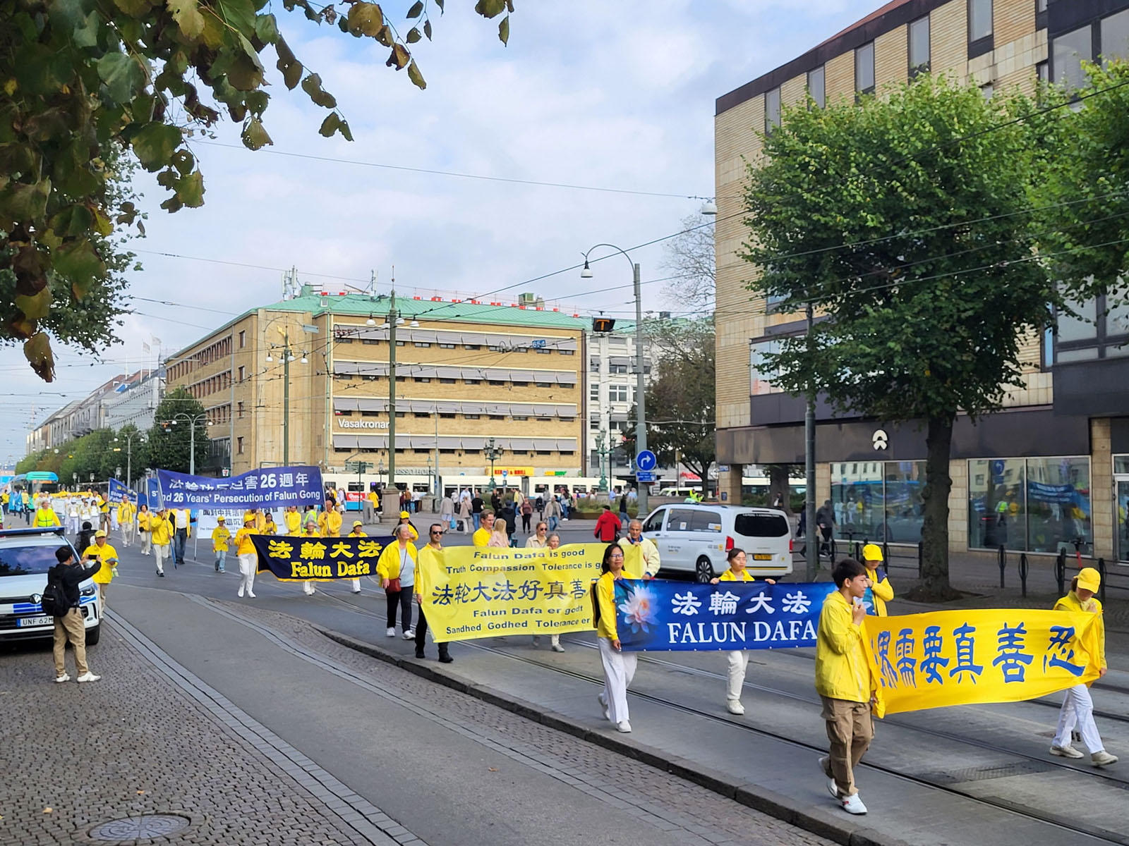 此次活動正是為了歡慶和紀念法輪大法創始人李洪志大師到歌德堡講法三十週年。