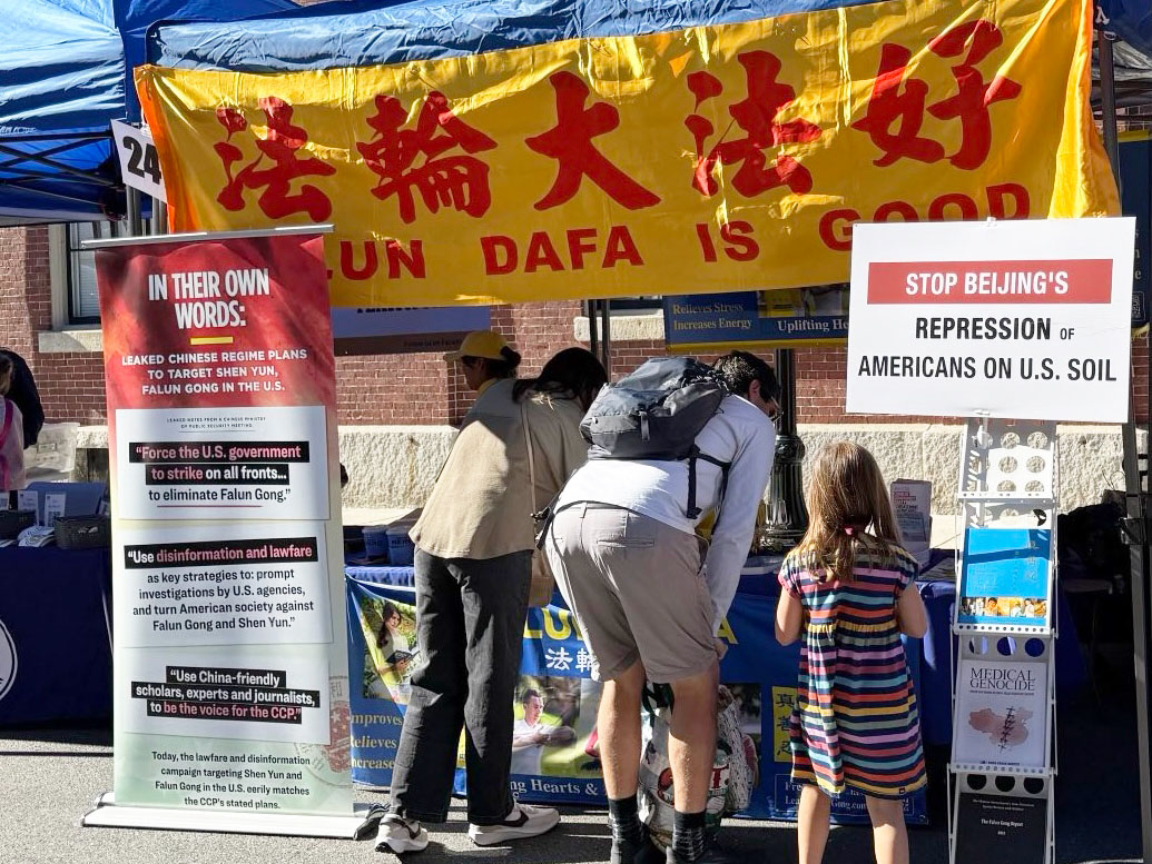 ![]() 圖1~5:二零二五年九月二十日一年一度的麻州北部城鎮安多佛(Andover)的大型慶祝活動,法輪功學員設立展位,吸引很多遊客前來關注。 |