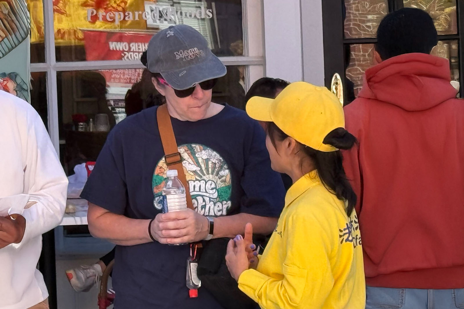 在安多佛生活了二十幾年的一位華裔男子路過法輪功攤位,他表示法輪功學員做的好,有勇氣、有擔當,是中國的希望。當今中國腐敗遍地,民不聊生,連講真話都很困難……他因為在網絡上說了幾句實話而被威脅、被刪除帳號。他感歎,如古人所說「危邦不居」,雖然思念家人,但為自己遠離中共,生活在自由的美國而慶幸而感激。