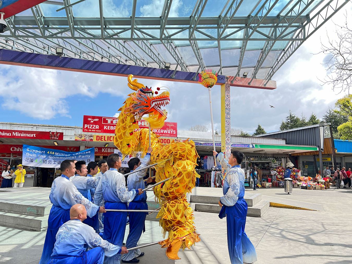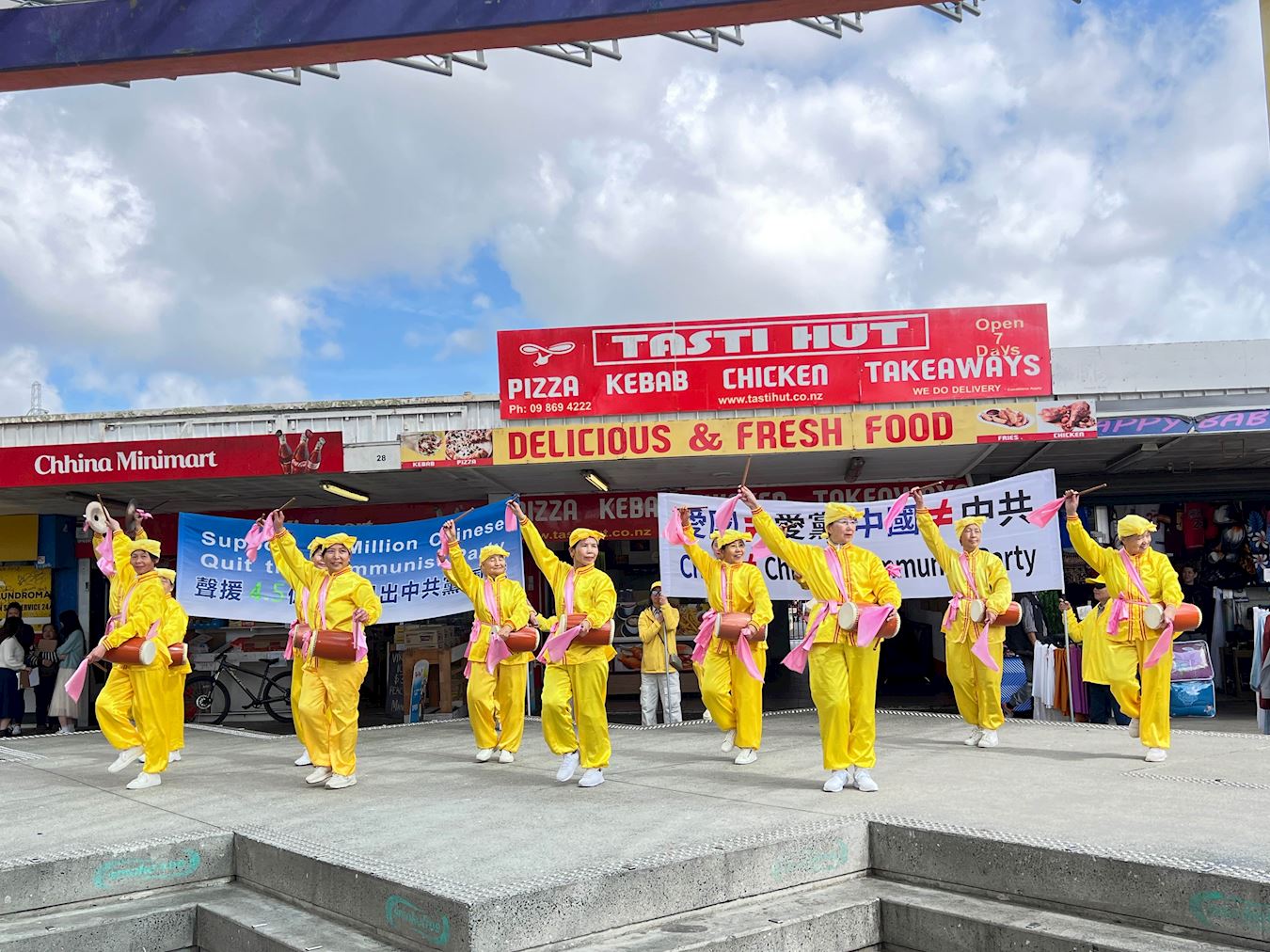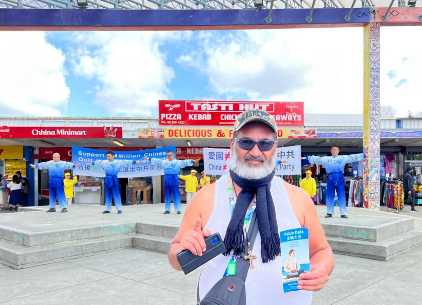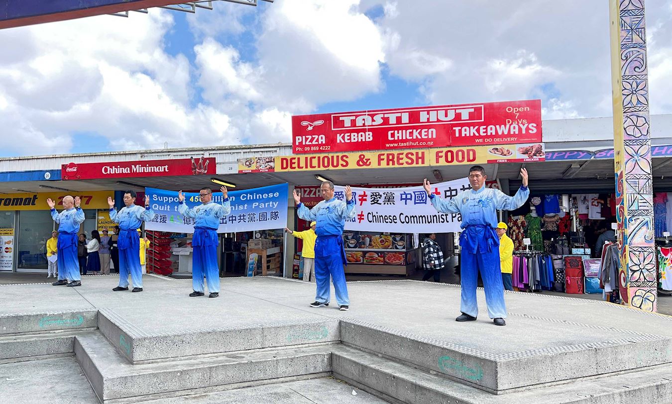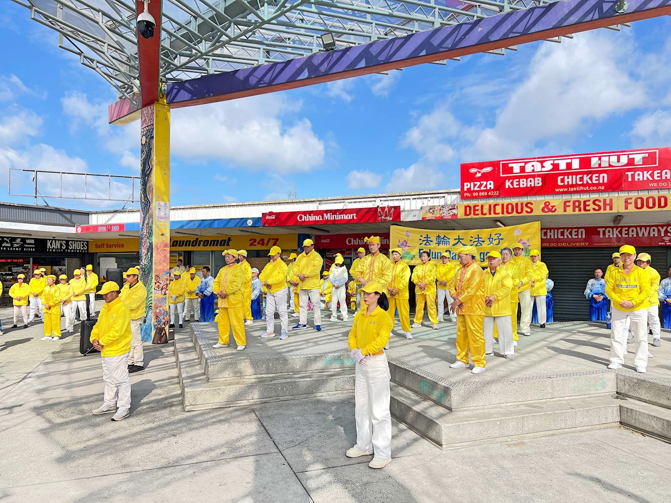 ![]() 圖1:二零二五年九月二十七日星期六,新西蘭奧克蘭法輪功學員在奧塔瓦市場(Otara market)集體煉功。 |