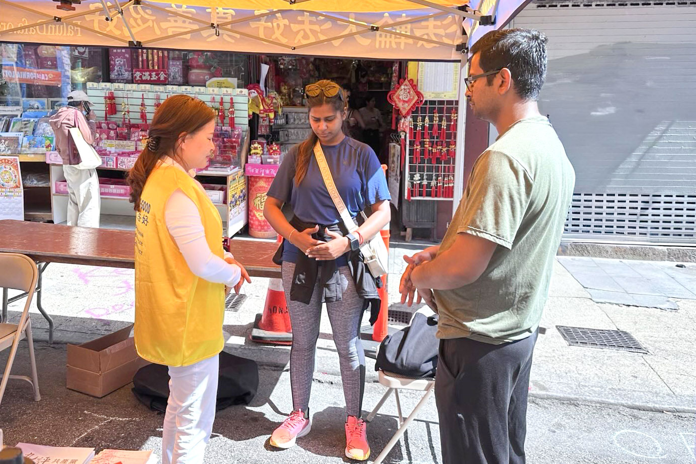 ![]() 圖1~5:二零二五年九月二十七日和二十八日,法輪功學員在舊金山中國城中秋街會講真相。 |